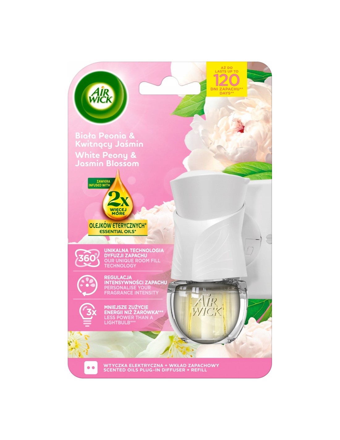 Air Wick Biała Piwonia & Jaśmin Komplet odświeżacz elektryczny + wkład 19 ml – elegancki zapach i świeżość na długo