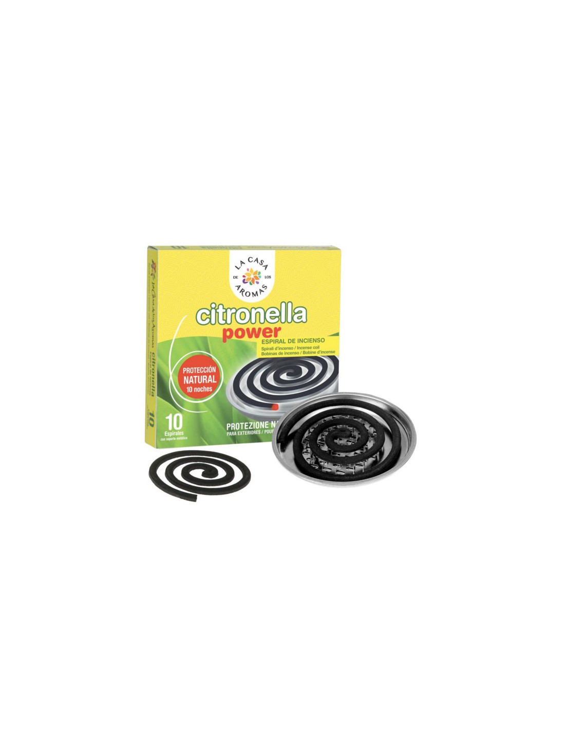 LA CASA DE LOS AROMAS CITRONELLA Spirala z podstawką metalową o zapachu TRAWY CYTRYNOWEJ, 10 szt