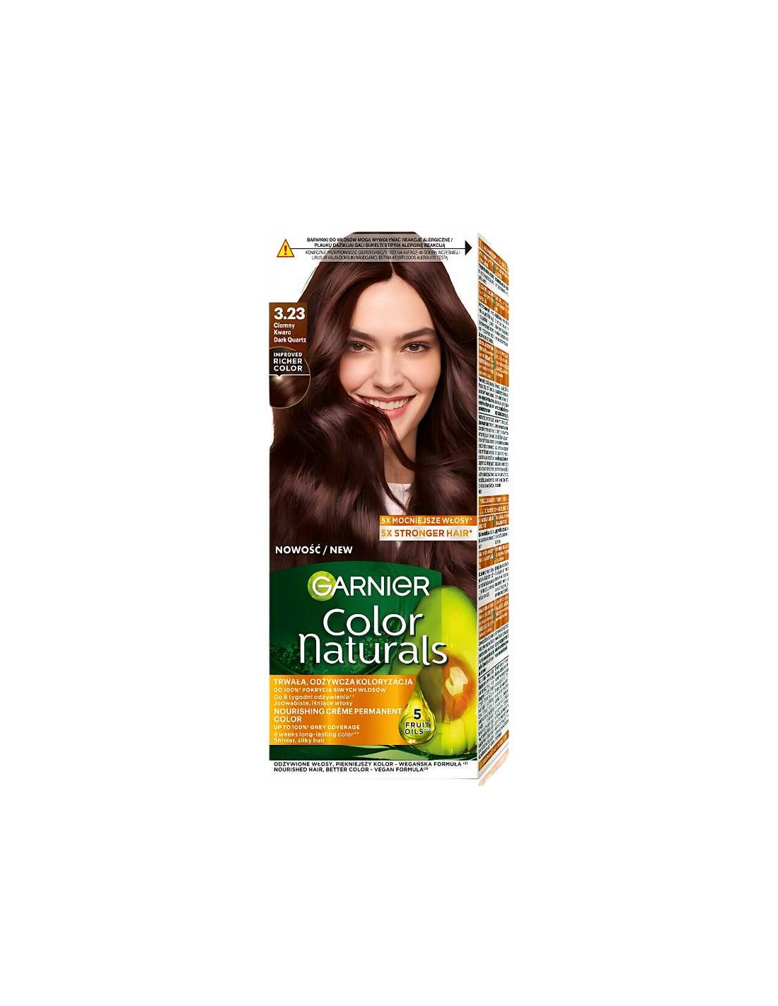 Garnier Color Naturals Farba do Włosów 3.23 Ciemny KwarcPragniesz intensywnej, pełnej blasku koloryzacji bez wychodzenia z domu?Garnier Color Naturals to idealne rozwiązanie dla osób poszukujących odważnego i wyrazistego odcienia, który jednocześnie pielęgnuje włosy. Zanurz się w luksusie pięciu odżywczych olejków i ciesz się niezwykłą głębią koloru oraz zdrowymi, lśniącymi włosami.