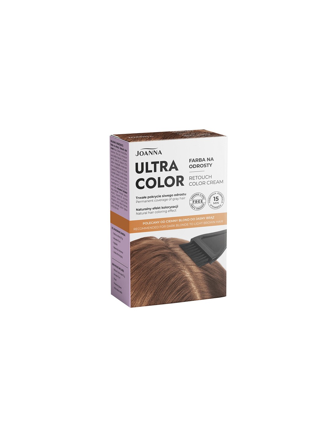 ULTRA COLOR farba na odrosty – od ciemny blond do jasny brązWidoczne odrosty potrafią pojawić się szybciej, niż planowana koloryzacja. Farba na odrosty ULTRA COLOR to praktyczne rozwiązanie, które pozwala szybko poprawić wygląd fryzury i wyrównać kolor dokładnie tam, gdzie jest to najbardziej potrzebne. Produkt został stworzony z myślą o osobach, które chcą zachować estetyczny, jednolity kolor włosów pomiędzy pełnymi farbowaniami.Szybkie i precyzyjne działanie między koloryzacjamiFarba ULTRA COLOR działa punktowo, koncentrując się na odrostach i siwych włosach. Dzięki temu nie obciąża całej fryzury i nie wymaga zużywania pełnowymiarowej farby. To szczególnie wygodne rozwiązanie, gdy odrosty pojawiają się w newralgicznych miejscach, takich jak przedziałek, linia czoła czy skronie.Najważniejsze korzyści: