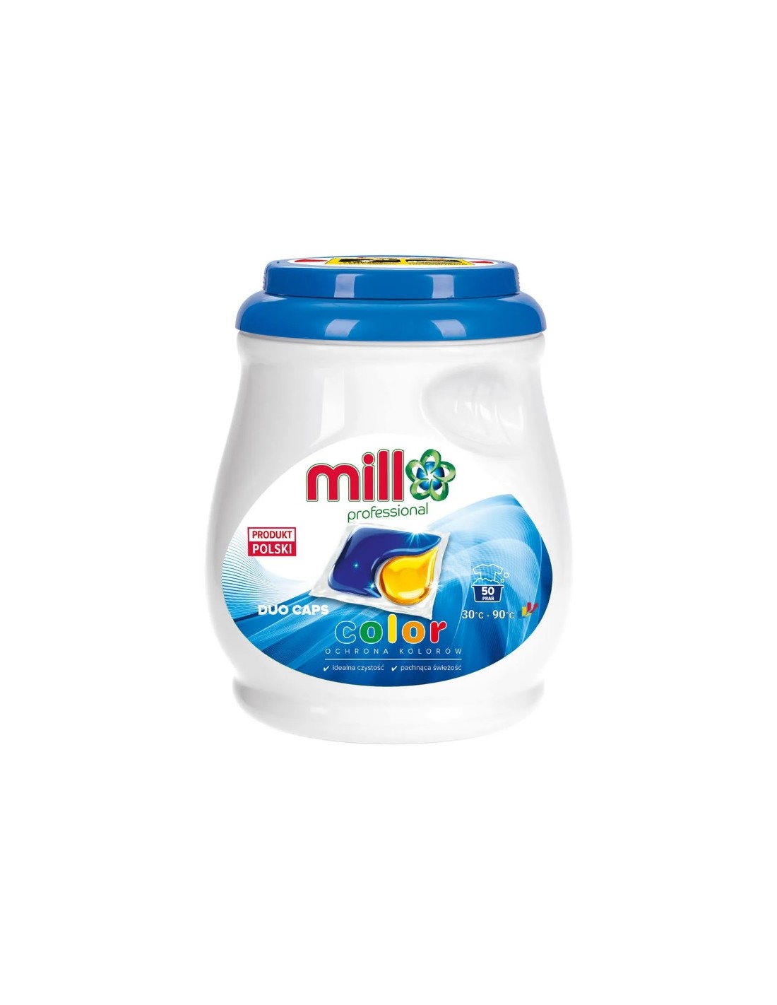 MILL Professional to 50 dwukomorowych kapsułek w słoju, które zapewniają idealną czystość Twoich kolorowych ubrań. Kapsułki nadają pranym tkaninom piękny zapach i zapewniają świeżość.Sposób użycia: Wrzuć kapsułkę do pralki. JEDNA KAPSUŁKA - JEDNO PRANIE, dozowanie na 4,5 kg tkaniny.W przypadku dużego stopnia zabrudzeń i twardej wody zaleca się podwojenie dawki.
