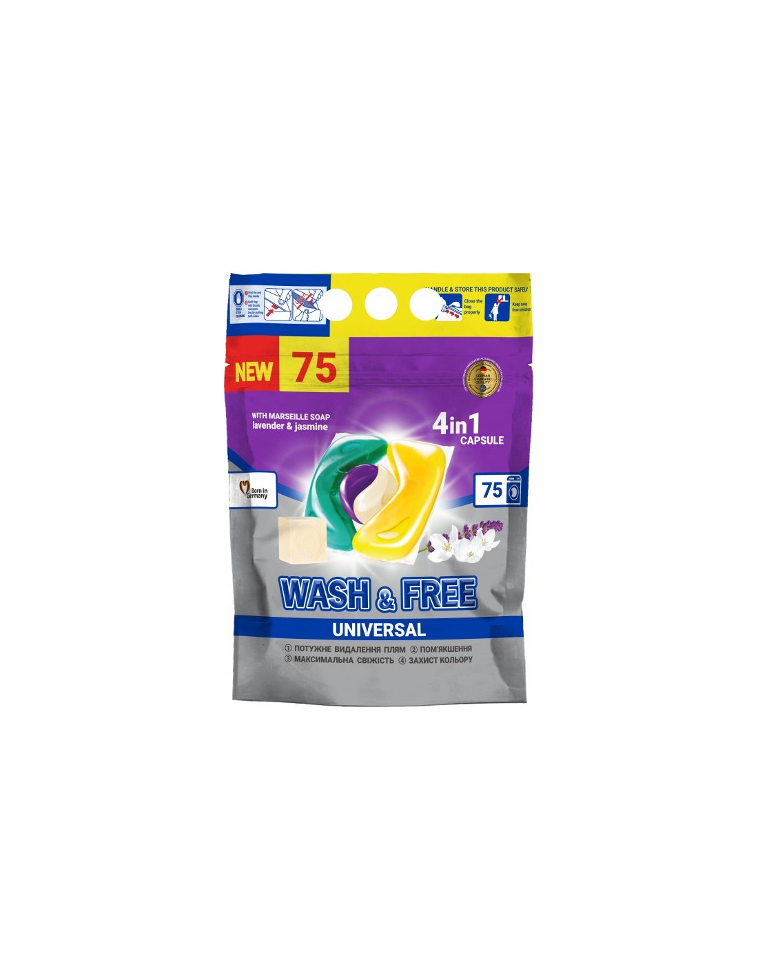 WASH&FREE 4w1 Uniwersalne kapsułki do prania LAWENDA JAŚMIN I MYDŁO MARSYLSKIE, 75 szt