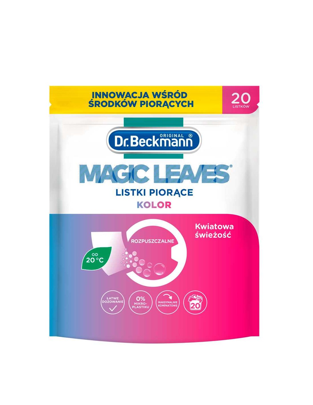 DR BECKMANN MAGIC LEAVES Listki piorące KOLOR, 20 sztZ lekkimi jak piórko listkami do prania MAGIC LEAVES od DR BECKMANN pranie stanie się niesamowicie wygodne.