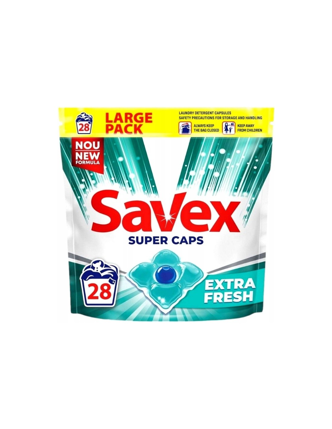 SAVEX Kapsułki do prania EXTRA FRESH 28 szt, 1 opOdkryj nową generację prania z Savex Super Caps Extra Fresh! Te innowacyjne kapsułki do prania oferują nie tylko nieskazitelną czystość twoich ubrań, ale także zachowują ich biel i kolory, pranie po praniu. Idealne rozwiązanie dla tych, którzy cenią sobie wygodę i efektywność.