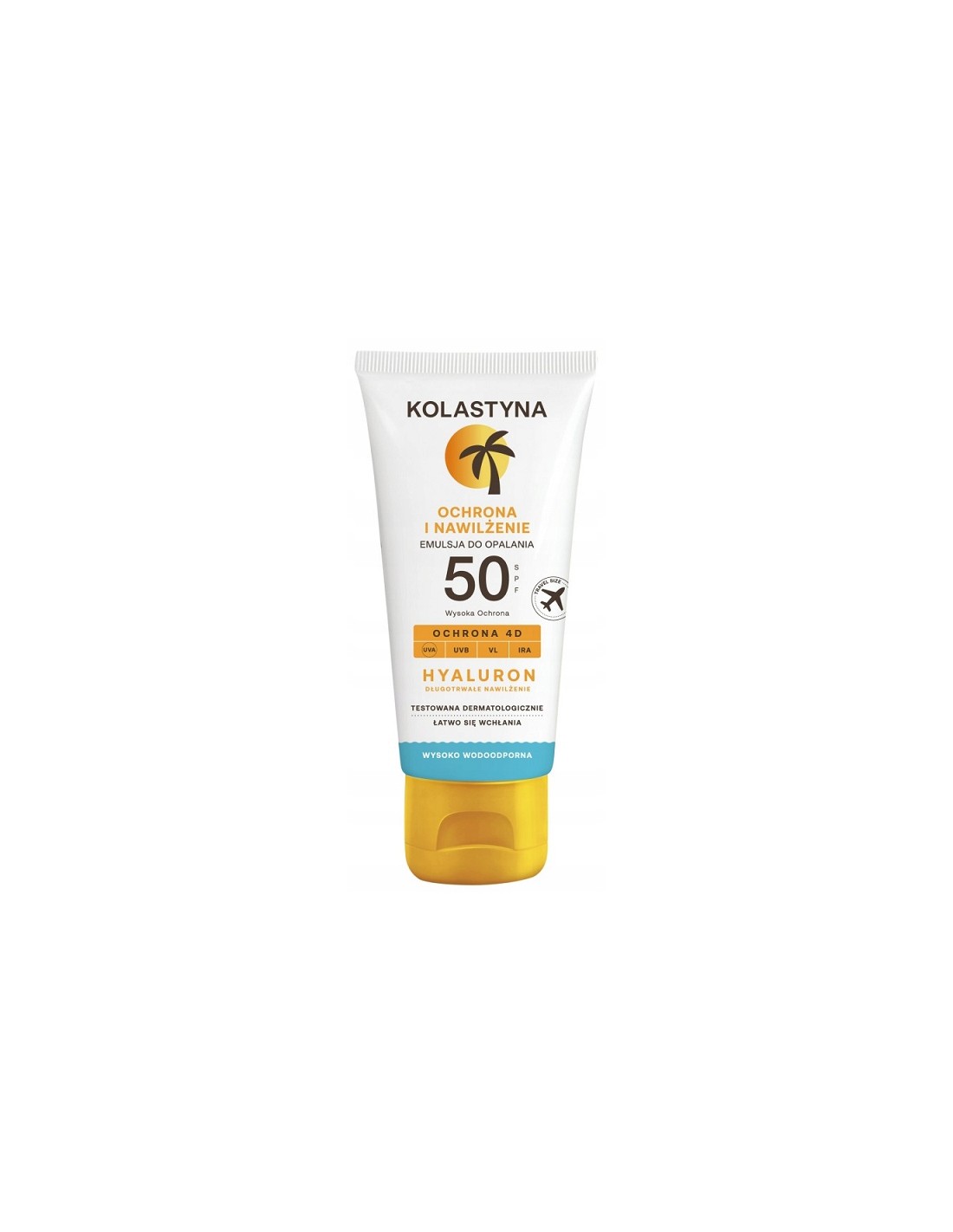 KOLASTYNA SUN Emulsja do opalania SPF50 80 ml TRAVEL SIZEEmulsja do opalania SPF 50 Kolastyna:- wodoodporna- wysoka ochrona-rozmiar podróżnyZapewnia fotostabilną ochronę przed 4 głównymi rodzajami promieniowania (UVA, UVB, VL, IR), które przyczyniają się do poparzenia słonecznego oraz powstawania wolnych rodników odpowiedzialnych za przedwczesne starzenie i fotostarzenie skóry,