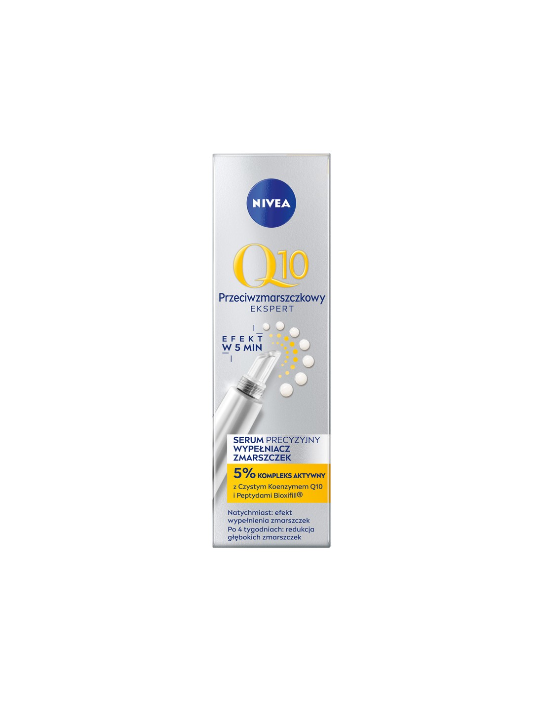 NIVEA Q10 PRZECIWZMARSZCZKOWY EKSPERT Serum do twarzy PRECYZYJNY WYPEŁNIACZ ZMARSZCZEK, 15 mlSerum do twarzy NIVEA Q10 Precyzyjny Wypełniacz Zmarszczek zawiera szybko wchłaniającą się formułę, która zawiera czysty Koenzym Q10 i Peptydy Bioxifill. Zawarte w formule składniki aktywne o działaniu przeciwstarzeniowym przenikają głęboko przez 10 warstw skóry, stymulując produkcję kolagenu, aby wypełnić uporczywe zmarszczki od wewnątrz.