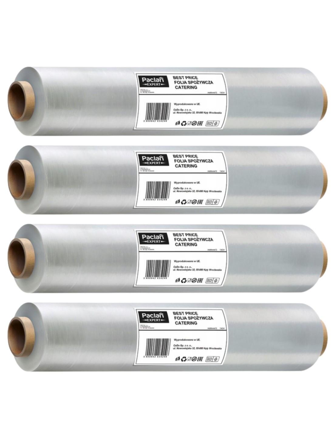 PACLAN EXPERT BEST PRICE Folia spożywcza 29 cm, pakiet 4 sztFolia spożywcza jest niezbędna wszędzie tam gdzie zachodzi potrzeba odpowiedniego zapakowania i zabezpieczenia żywności.Folia spożywcza PACLAN idealnie nadaje się do owijania mięs, wędlin, owoców i warzyw.Owinięte w nią kanapki, przekąski czy ciasto na dłużej zachowują smak i świeżość.