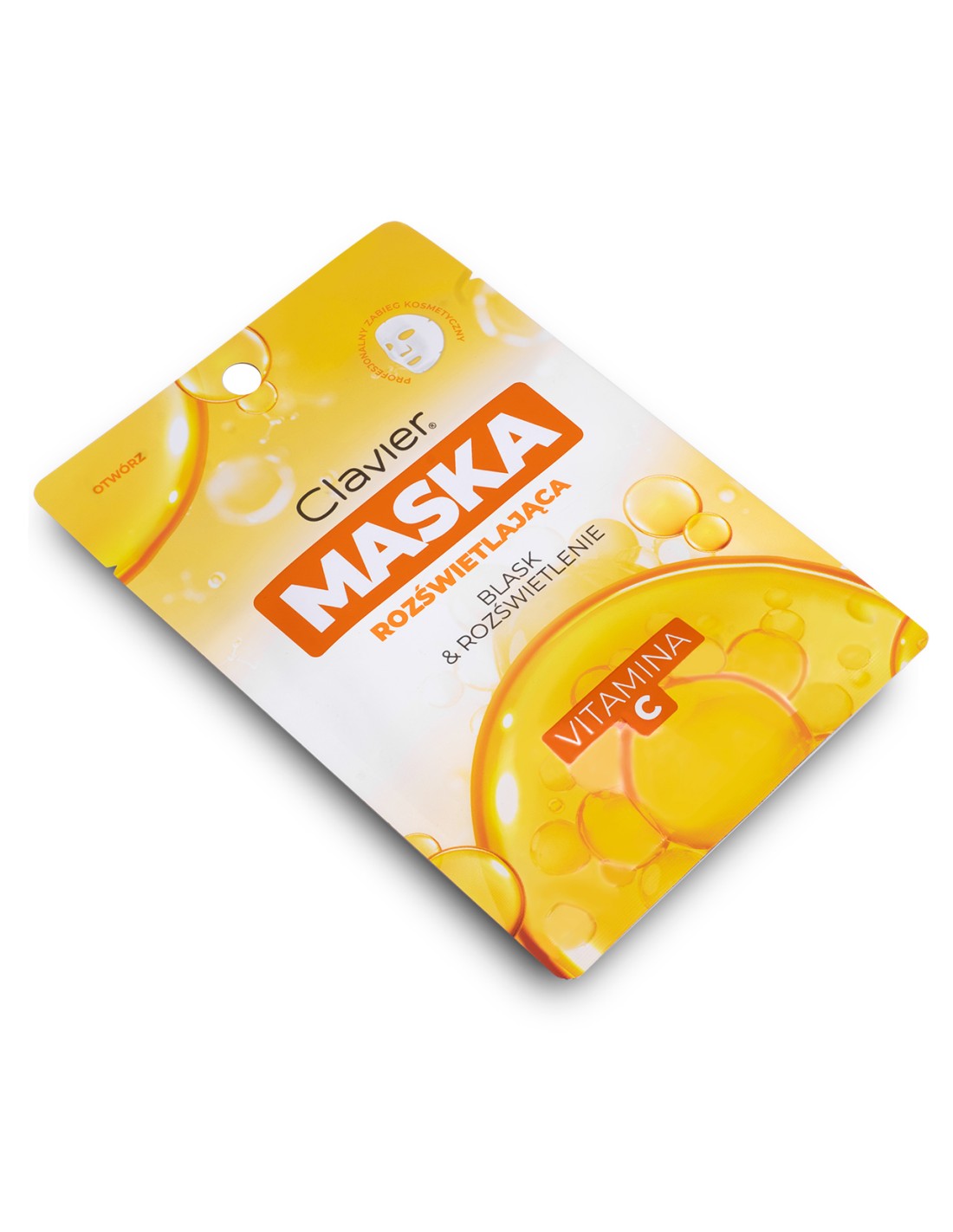 CLAVIER Maska do twarzy w płacie ROZŚWIETLAJĄCA Z WITAMINĄ C, 25 mlRozświetlająca, dodająca blasku maska do twarzy w płacie CLAVIER z witaminą C wyraźnie poprawia wygląd cery.Maska to skuteczny sposób na uzyskanie promiennej skóry. Działa intensywnie, aby rozświetlić, zregenerować i nawodnić skórę. Jej unikalna formuła redukuje stany zapalne i przebarwienia. Składniki aktywne zawarte w maseczce działają nie tylko powierzchniowo, ale również głęboko pod skórą.Regularne stosowanie tej maski