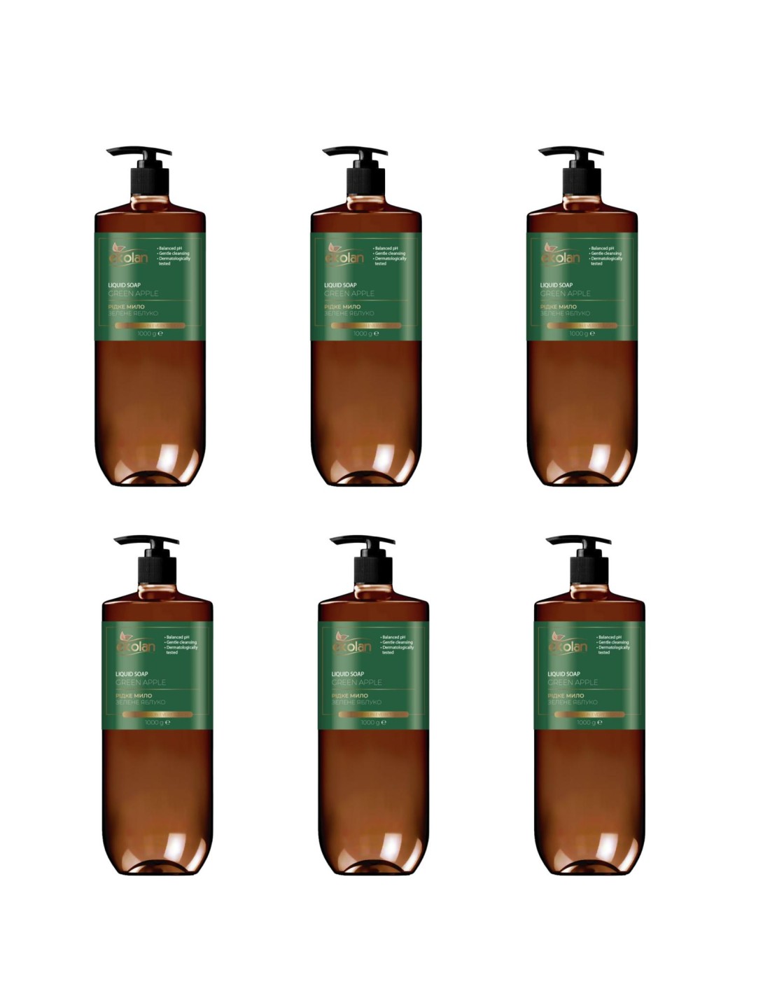 EKOLAN Mydło kremowe w płynie 1000 g Zielone Jabłko, pakiet 6 szt. – świeżość i komfort w codziennej higienie. Duże, litrowe opakowanie sprawia, że produkt jest wydajny i ekonomiczny, a jednocześnie wygodny w użyciu. Kremowa konsystencja sprawia, że mydło dobrze się pieni, skutecznie usuwa zabrudzenia i pozostawia dłonie przyjemnie pachnące świeżym jabłkiem. Dlaczego warto wybrać kremowe mydło EKOLAN Zielone Jabłko Starannie opracowana formuła sprawia, że mydło: