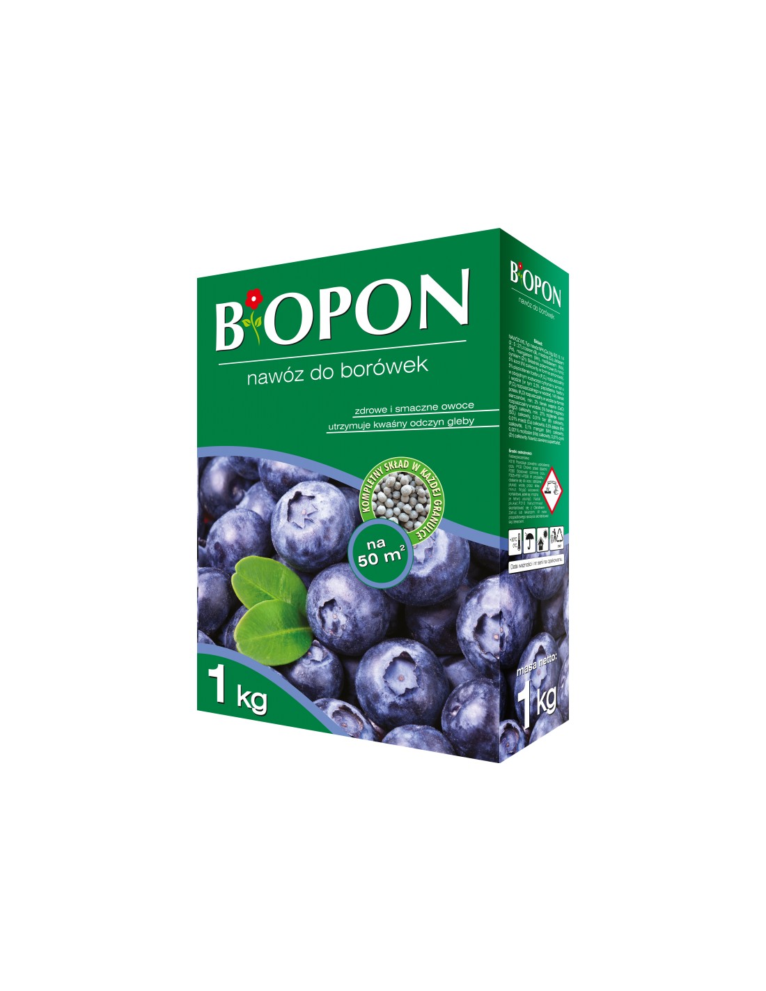 AZOT 5%, FOSFOR 5%, POTAS 14%, MAGNEZ 5%, SIARKA 27%Wieloskładnikowy nawóz granulowany przeznaczony do nawożenia borówek oraz pozostałych roślin kwasolubnych. Specjalistyczny nawóz zawiera odpowiednio zbilansowane składniki niezbędne do utrzymania optymalnej kwasowości podłoża. Jego systematyczne stosowanie zapewnia idealne warunki do rozwoju roślin. Zawartość potasu gwarantuje obfite owocowanie.