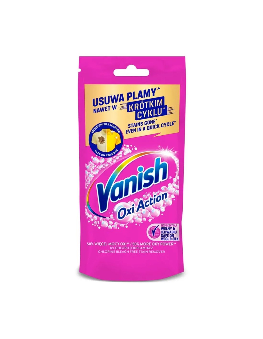 VANISH OXI Odplamiacz do tkanin w żelu SASZETKA MAX 100 ml – skuteczne usuwanie plam wtedy, gdy ich potrzebujesz