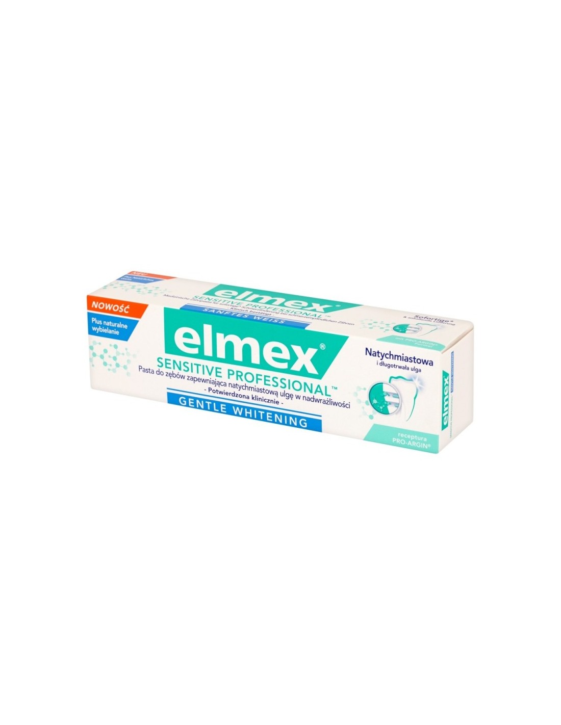- elmex Sensitive Professional Gentle Whitening zamyka kanaliki zębinowe, w których są zakończenia nerwowe, dzięki czemu blokuje ból.