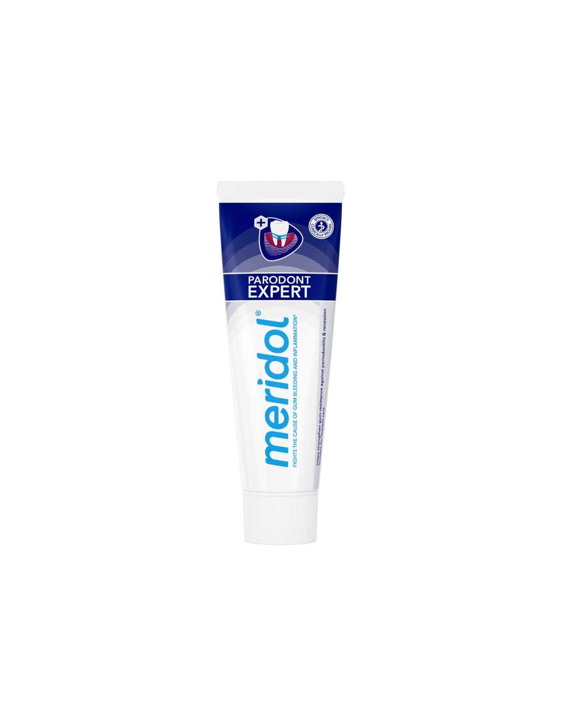 MERIDOL Pasta do zębów PARODONT EXPERT, 75 mlZ pastą do zębów MERIDOL PARODONT EXPERT zadbasz o swoje dziąsła, zęby i implanty.Pasta ta nie tylko pomaga walczyć z przyczynami krwawienia i podrażnienia dziąseł, ale także pomaga wzmocnić ich odporność na krwawienie, zapalenie przyzębia i recesję. Robi to poprzez redukcję płytki bakteryjnej, która często stanowi przyczynę problemu. Działanie pasty opiera się na potwierdzonej klinicznie formule, przeznaczonej do pielęgnacji zębów naturalnych i implantów.Pasta zawiera podwójnie aktywną formułę ze składnikiem wzmacniającym skuteczność, opracowaną specjalnie dla dziąseł podatnych na krwawienie, cofanie się i parodontozę. Nieleczone problemy z dziąsłami mogą prowadzić do poważnych konsekwencji dla twoich zębów. Podwójnie aktywna formuła zawiera większą koncentrację składników antybakteryjnych i wspiera naturalny proces gojenia dziąseł.Pasta do zębów MERIDOL PARODONT EXPERT jest odpowiednia do implantów dentystycznych, które wymagają ochrony przed bakteriami powodującymi stany zapalne.Sposób użycia: Szczotkuj 2 razy dziennie po 2 minuty.Skład: Glycerin, Hydrated Silica, Aqua, Sorbitol, PEG-12, Tetrasodium Pyrophosphate, Aroma, Sodium Lauryl Sulfate, Sodium Citrate, PVP, Stannous Pyrophosphate, Trisodium Phosphate, Zinc Oxide, Microcrystalline Cellulose, Sodium Saccharin, Citric Acid, Zinc Citrate, Phosphoric Acid, Stannous Fluoride, Cocamidopropyl Betaine, Hydroxyethylcellulose, Carrageenan, Sodium Fluoride, Sucralose, Limonene, CI 74160.Zawiera fluorek cyny (II) i fluorek sodu. (1450 ppm F-).