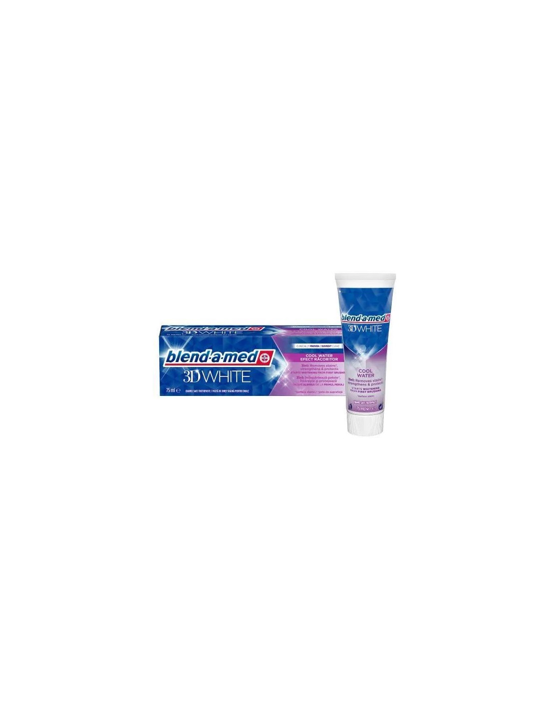 BLEND-A-MED 3D WHITE Pasta do zębów COOL WATER, 75 mlDelikatna, wybielająca pasta do zębów BLEND A MED 3D WHITE COOL WATER to 3 korzyści w jednej paście, która wybiela, wzmacnia i chroni zęby. Bezpieczna dla szkliwa formuła delikatnie usuwa przebarwienia powierzchniowe na zębach, zapewniając piękny biały uśmiech oraz fantastyczne uczucie odświeżenia cool water.3 korzyści w 1: