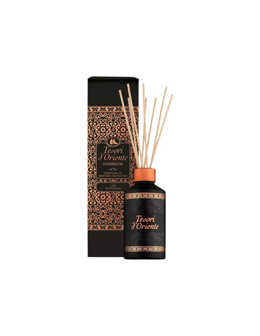 TESORI DORIEN Patyczki Zapachowe Hammam, 200 mlDzięki Tesori d'Oriente Hammam możesz wprowadzić do swojego domu nuty egzotyki, które poprawią nastrój i wprowadzą w stan głębokiego odprężenia. To wyjątkowe połączenie zapachów z ciepłymi akcentami jaśminu i bursztynu tworzy atmosferę spokoju i równowagi.Przenieś się do krainy harmonii i relaksu z Tesori d'Oriente Hammam, ekskluzywnym dyfuzorem zapachowym inspirowanym tradycjami orientalnych łaźni. Ta wyjątkowa kompozycja zapachowa została stworzona, aby wypełnić Twoje wnętrza bogatym aromatem olejku arganowego i kwiatu pomarańczy, przywodząc na myśl mistyczną atmosferę Orientu