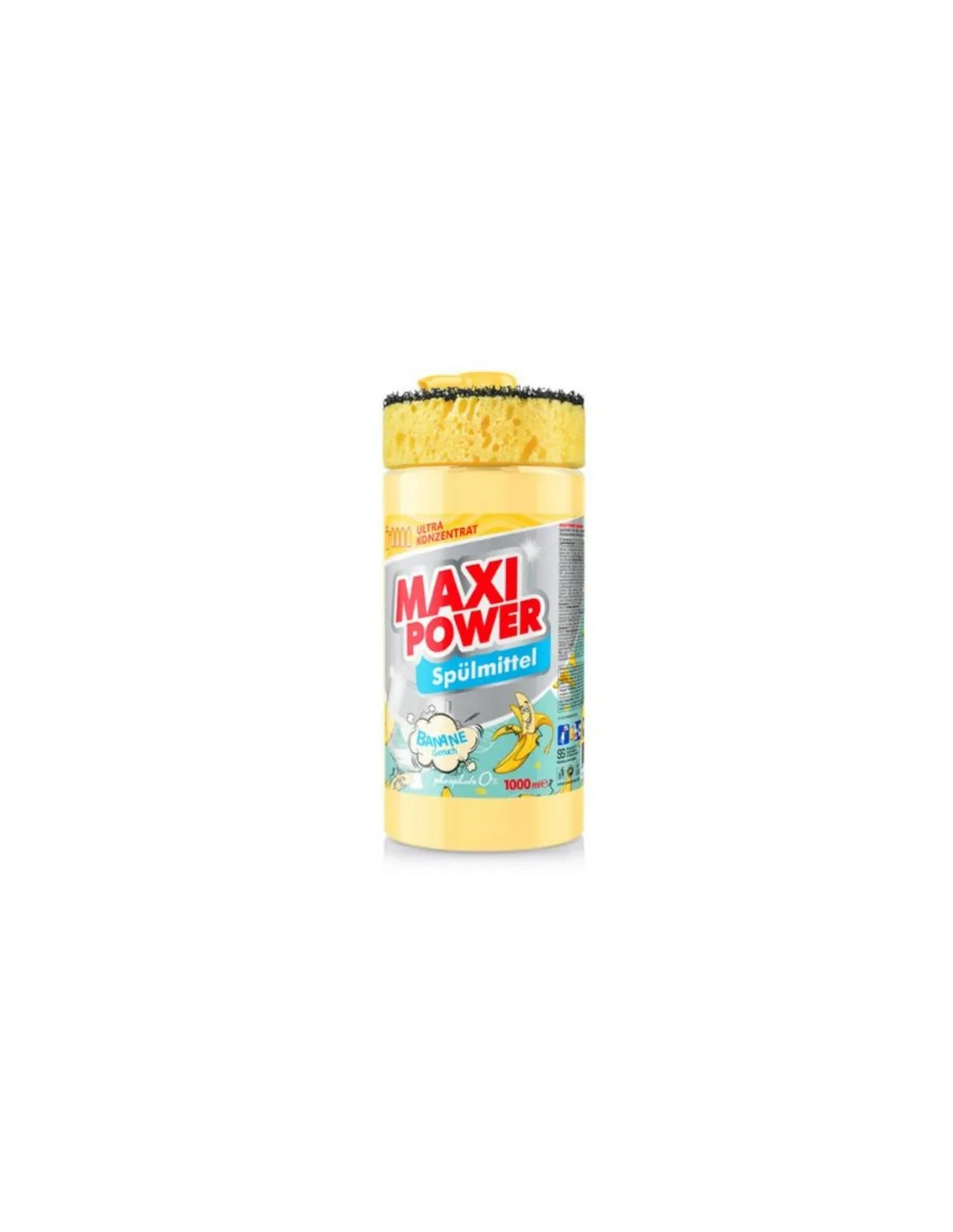MAXI POWER – bananowy płyn do naczyń 1 l z pompką i gąbką, który usprawnia codzienne zmywanie