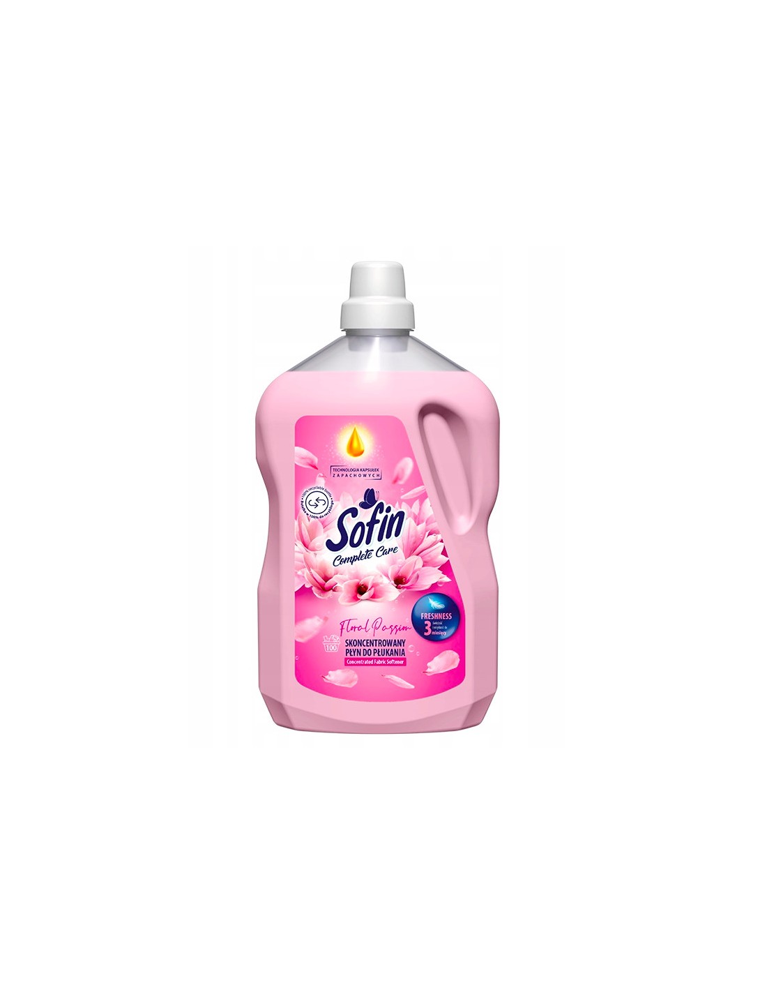 GLOBAL SOFIN Skoncentrowany płyn do płukania FLORAL, 2,5 lDzięki technologii kapsułek zapachowych pozwala cieszyć się miękkością i świeżym zapachem ubrań nawet do 3 miesięcy przechowywania w garderobie.2,5 litra wystarcza aż na 100 płukania. Butelka w 100% przeznaczona do recyklingu, folia z perforacją ułatwiająca recykling, skoncentrowana formuła, technologia kapsułek zapachowych zapewnia świeżość i miękkość aż do 3 miesięcyDla efektu miękkiego prania użyć 25 ml na 4,5 kg wsadu. Dla efektu extra miękkiego prania użyć 40 ml na 4,5 kg wsadu. W przypadku płukania ręcznego użyj 15 ml na 10 litrów wody.Dzięki technologii kapsułek zapachowych pozwala cieszyć się miękkością i świeżym zapachem ubrań nawet do 3 miesięcy przechowywania w garderobie. Produkt zawiera etykietę cyfrową - specjalne udogodnienie dla osób mających problemy ze wzrokiem.Sofin 2,5L wystarcza aż na 100 płukań.Butelka w 100% przeznaczona do recyklingu, folia z perforacją ułatwiająca recykling, skoncentrowana formuła, technologia kapsułek zapachowych zapewnia świeżość i miękkość aż do 3 miesięcy.