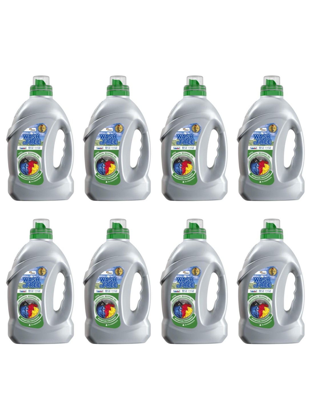 WASH&FREE Żel do prania UNIWERSALNY MOUNTAIN FRESHNESS 57 prań 2000 g, 8 sztUniwersalny żel do prania WASH & FREE o rześkim zapachu świeżego, górskiego powietrza zadba o czystość i świeżość ubrań Twoich i Twoich bliskich. Formuła żelu pielęgnuje prane tkaniny, dba o ich wygląd i kolorystykę, dzięki czemu wyglądają one jak nowe.Wystarczy zabrudzone, nieświeże ubranie wyprać, wysuszyć i cieszyć się jego odświeżonym wyglądem, czystością i otulać miękkością i świeżym zapachem tkaniny. Uniwersalny żel WASH&FREE MOUNTAIN FRESHNESS: