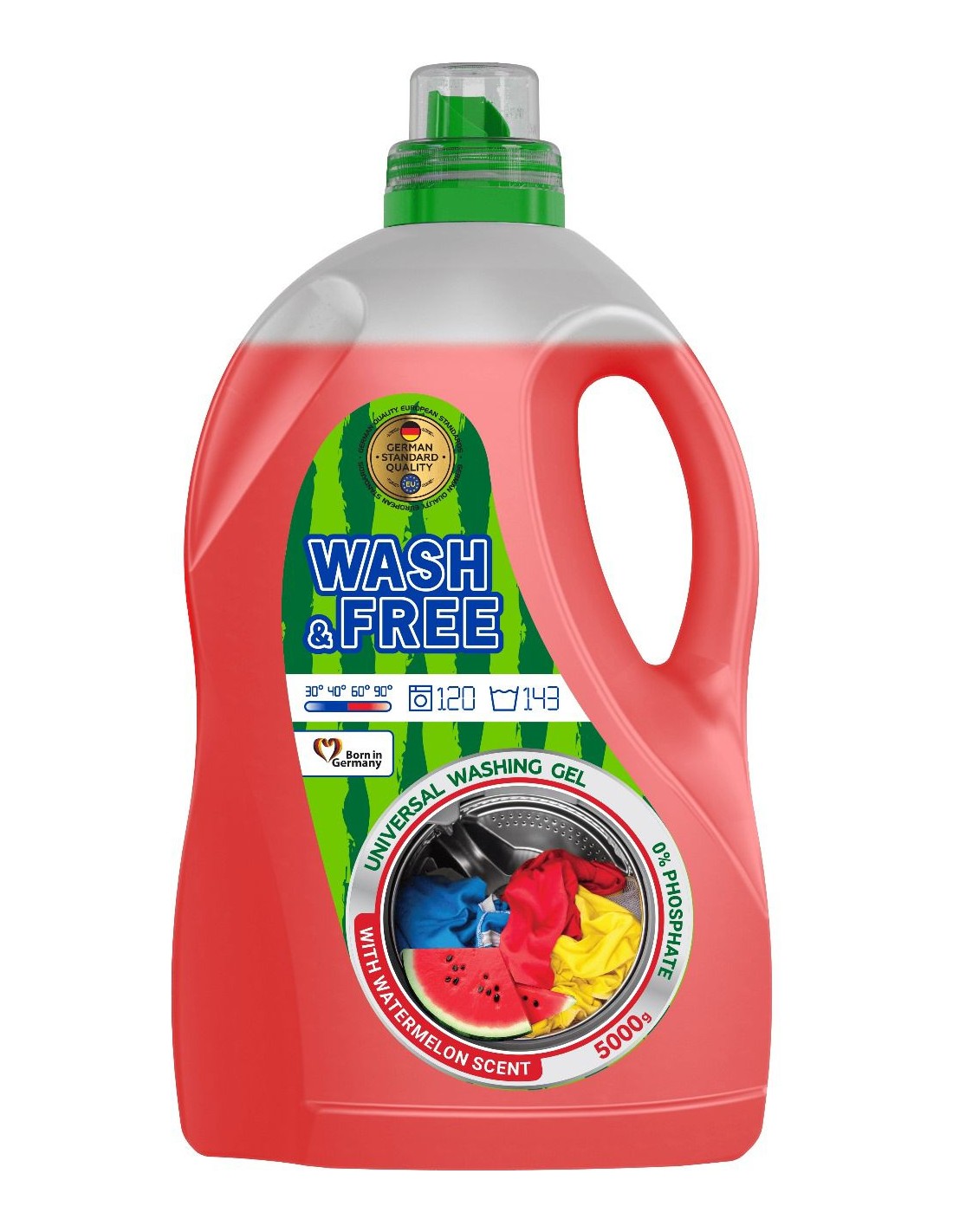 WASH FREE Żel do prania WATERMELON 5 l, 143 prania to wydajny i skuteczny detergent, który zadba o czystość Twoich ubrań, jednocześnie chroniąc tkaniny i środowisko.WASH FREE Żel do prania WATERMELON 5 l – maksymalna wydajność i delikatna pielęgnacja tkaninTen żel do prania łączy w sobie siłę skutecznego usuwania plam z troską o strukturę tkanin. Dzięki dużej pojemności i aż 143 dawkom, zapewnia długotrwałe wsparcie w codziennych obowiązkach domowych. Jego formuła jest dostosowana do różnych rodzajów tkanin, co czyni go uniwersalnym wyborem dla całej rodziny.Skuteczne usuwanie zabrudzeń z żelem WASH FREEŻel do prania WASH FREE WATERMELON skutecznie radzi sobie z różnorodnymi plamami – od tłustych i oleistych po codzienne zabrudzenia. Jego formuła głęboko penetruje włókna, usuwając zanieczyszczenia, ale jednocześnie jest delikatna, dzięki czemu chroni kolory i zapobiega wyblaknięciu ubrań.Uniwersalne zastosowanie dla każdego rodzaju praniaWASH FREE sprawdzi się zarówno do prania białych, jak i kolorowych tkanin, w pralkach automatycznych oraz do prania ręcznego. To praktyczne rozwiązanie dla osób ceniących wygodę i oszczędność czasu, ponieważ jeden produkt zastępuje kilka innych detergentów.Formuła, która łączy skuteczność i bezpieczeństwoŻel zawiera starannie dobrane składniki aktywne, które skutecznie usuwają brud, a jednocześnie są łagodne dla tkanin i skóry. W jego składzie znajdziesz m.in.: