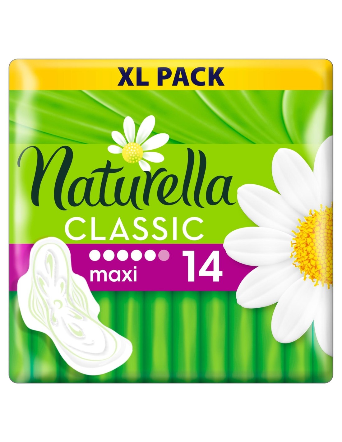 Naturella Classic Maxi Camomile Podpaski 14 sztuk – komfort i świeżość na cały dzień. Szukasz podpasek, które skutecznie chronią, a przy tym są delikatne dla skóry? Naturella Classic Maxi z rumiankiem to propozycja dla kobiet, które cenią komfort, naturalność i bezpieczeństwo – niezależnie od intensywności dnia. Naturella Classic Maxi Camomile – większy rozmiar, większe poczucie pewności W wersji Maxi podpaski są dłuższe i bardziej chłonne niż klasyczne modele, dzięki czemu doskonale sprawdzą się w dniach bardziej obfitego krwawienia lub wtedy, gdy po prostu potrzebujesz dodatkowej ochrony – np. podczas snu czy aktywności fizycznej. Naturalna pielęgnacja i świeżość dzięki ekstraktowi z rumianku To, co wyróżnia Naturellę na tle innych podpasek, to unikalna warstwa kontaktowa z dermatologicznie testowanym ekstraktem z rumianku. Działa ona kojąco na skórę, minimalizując ryzyko podrażnień i sprawiając, że każda podpaska jest przyjemna w dotyku.Dlaczego warto wybrać podpaski Naturella Classic Maxi Camomile? Dłuższy i szerszy kształt zapewnia skuteczniejszą ochronę w każdej pozycji. System chłonny Dri-Weave szybko odprowadza wilgoć i pozostawia skórę suchą. Delikatny zapach rumianku zapewnia uczucie świeżości przez cały dzień. Miękka powłoczka przyjazna nawet dla wrażliwej skóry 14 sztuk w opakowaniu – praktyczny zapas na kilka dni cyklu. Idealne na noc, do pracy, szkoły i codziennej aktywności Naturella Classic Maxi to podpaski, które możesz stosować zarówno w dzień, jak i w nocy. Świetnie sprawdzą się u kobiet prowadzących aktywny tryb życia, potrzebujących solidnej ochrony bez rezygnowania z uczucia komfortu i świeżości.Opakowanie zawiera 14 podpasek pakowanych indywidualnie – dzięki temu z łatwością zabierzesz je do torebki czy plecaka, bez obaw o higienę. Naturella Classic Maxi Camomile – kiedy potrzebujesz nie tylko ochrony, ale też łagodnego wsparcia dla skóry w wyjątkowe dni miesiąca.