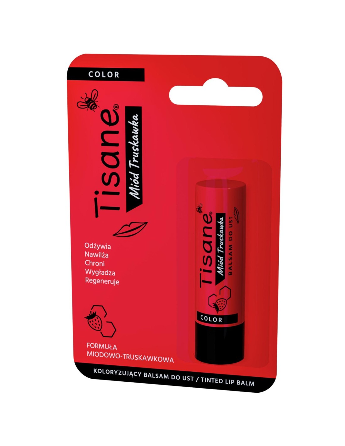 TISANE Pomadka do ust Miód Truskawka 5,1 g – regenerująca ochrona i naturalna pielęgnacja każdego dnia Suche, spierzchnięte usta potrafią skutecznie obniżyć komfort – pieką, napinają się i szybciej się łuszczą. TISANE Pomadka do ust Miód Truskawka to praktyczne rozwiązanie, które łączy pielęgnację, ochronę i przyjemny smak. Dzięki kompaktowej formie możesz mieć ją zawsze przy sobie i stosować wtedy, gdy Twoje usta najbardziej tego potrzebują. To pomadka ochronna, która nie tylko chwilowo wygładza, ale realnie wspiera regenerację delikatnej skóry ust i pomaga utrzymać jej dobrą kondycję niezależnie od pogody. Jak działa pomadka ochronna TISANE? Skóra ust jest cienka i pozbawiona gruczołów łojowych, dlatego szybciej traci wilgoć. Ta pomadka do ust działa wielokierunkowo: