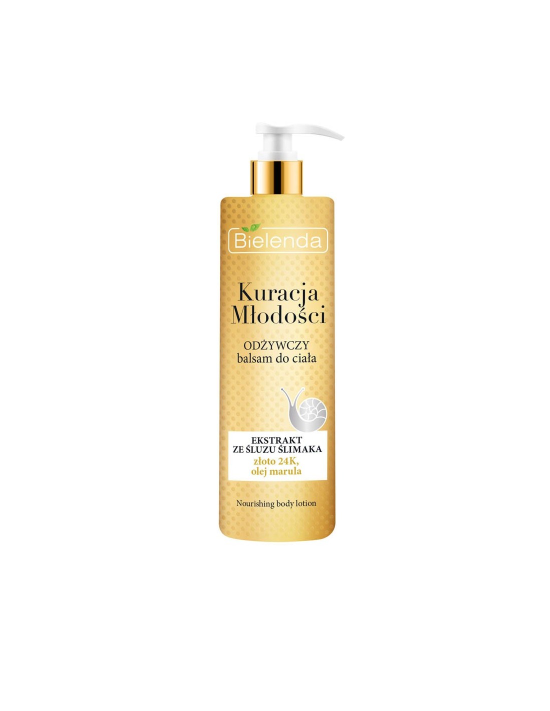 BIELENDA KURACJA MŁODOŚCI BALSAM DO CIAŁA ODŻYWCZY 400ML gwarantuje głębokie nawilżenie oraz stanowi wyjątkowo zaawansowany system spowalniający procesy starzenia skóry.Regenerujący balsam do ciała bazuje na absolutnym odkryciu kosmetycznym ostatnich lat: EKSTRAKCIE ZE ŚLUZU ŚLIMAKA, który zapewnia głęboką odbudowę, naprawę i regenerację skóry. Dodatkowa zawartość ZŁOTA 24K oraz OLEJU Z OPUNCJI FIGOWEJ gwarantuje głębokie nawilżenie oraz stanowi wyjątkowo zaawansowany system spowalniający procesy starzenia skóry.DziałanieBalsam widocznie poprawia wygląd i kondycję skóry, skutecznie regeneruje, wygładza , nawilża i zmiękcza skórę, poprawia jędrność i elastyczność, zapobiega wiotczeniu.EfektJędrne, gładkie i aksamitne w dotyku ciało, skóra dobrze nawilżona i odżywiona.poj.400ml