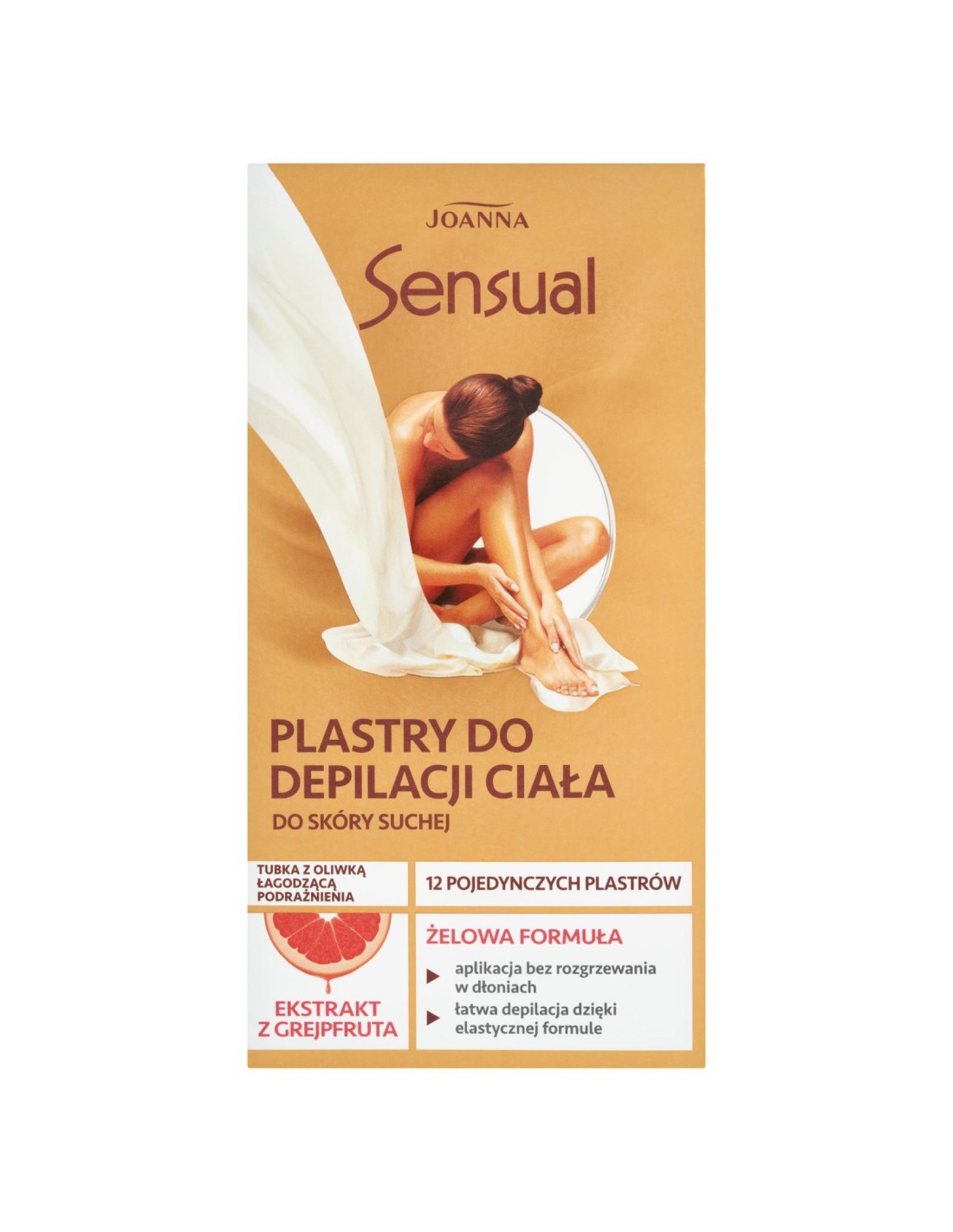 JOANNA SENSUAL Plastry do depilacji ciała do skóry suchej GREJPFRUT, 12 szt