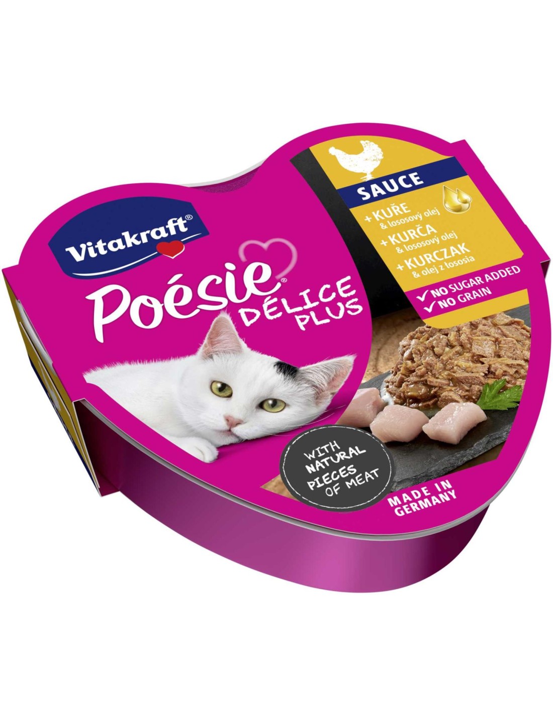 Vitakraft Poesie Delice Kurczak Sos 85g to mokra karma dla dorosłych mruczków.