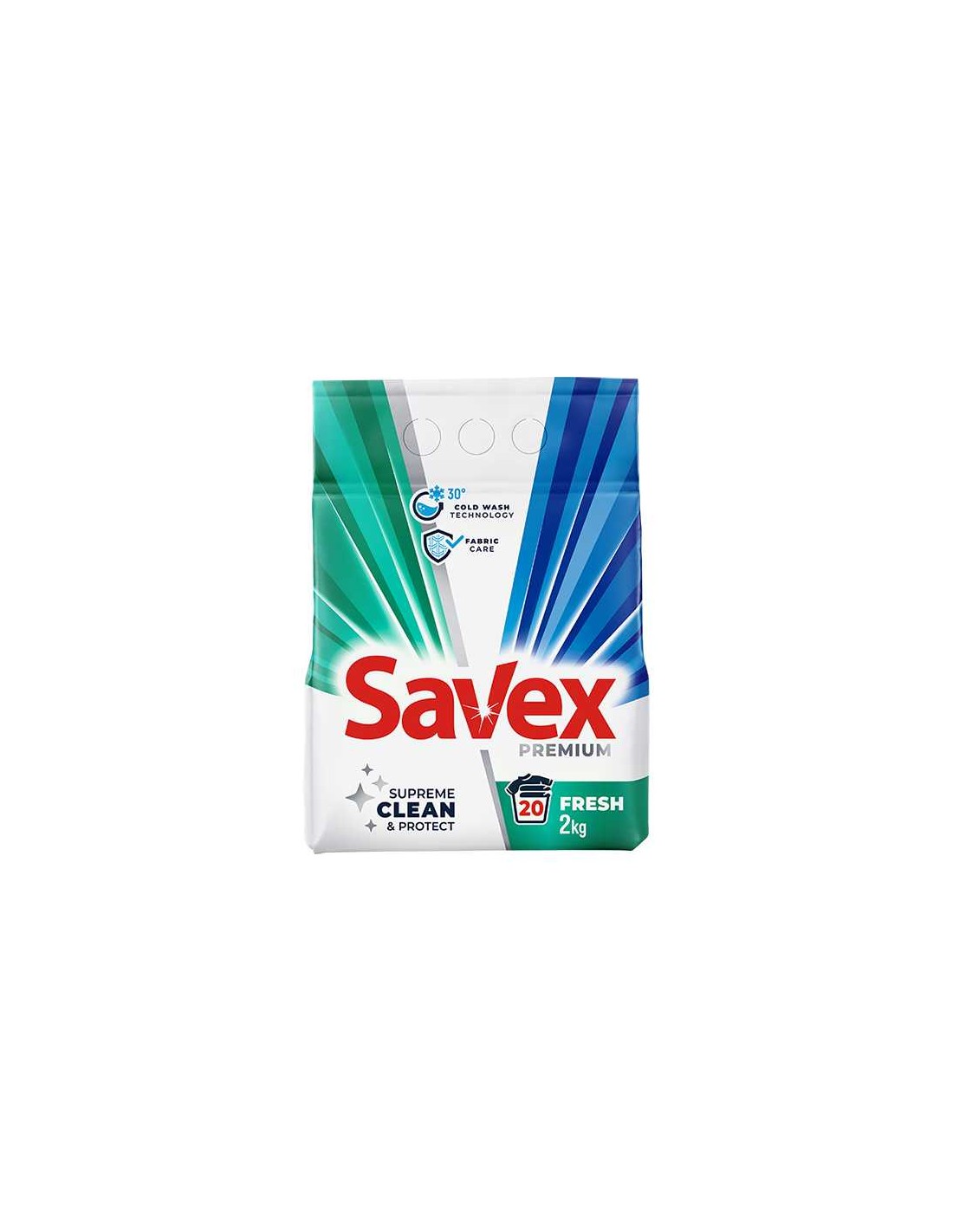 SAVEX Proszek do prania FRESH 20 prań, 2 kgProszek do prania SAVEX PREMIUM FRESH zapewnia doskonałe rezultaty w usuwaniu plam oraz nadaje świeży, długotrwały aromat. SAVEX posiada doskonałą siłę usuwania plam bez wysiłku, gwarantując idealnie czyste i niewiarygodnie świeże pranie.Marka SAVEX zapewnia kompleksową pielęgnację Twojego prania, wykazując perfekcyjne działanie zarówno pod względem myjącym, jak i zapachowym. Nie ma znaczenia czy Twoje pranie jest białe, kolorowe, z uporczywymi plamami lub zwykłymi zabrudzeniami - SAVEX to marka ekspertów, na której możesz polegać.