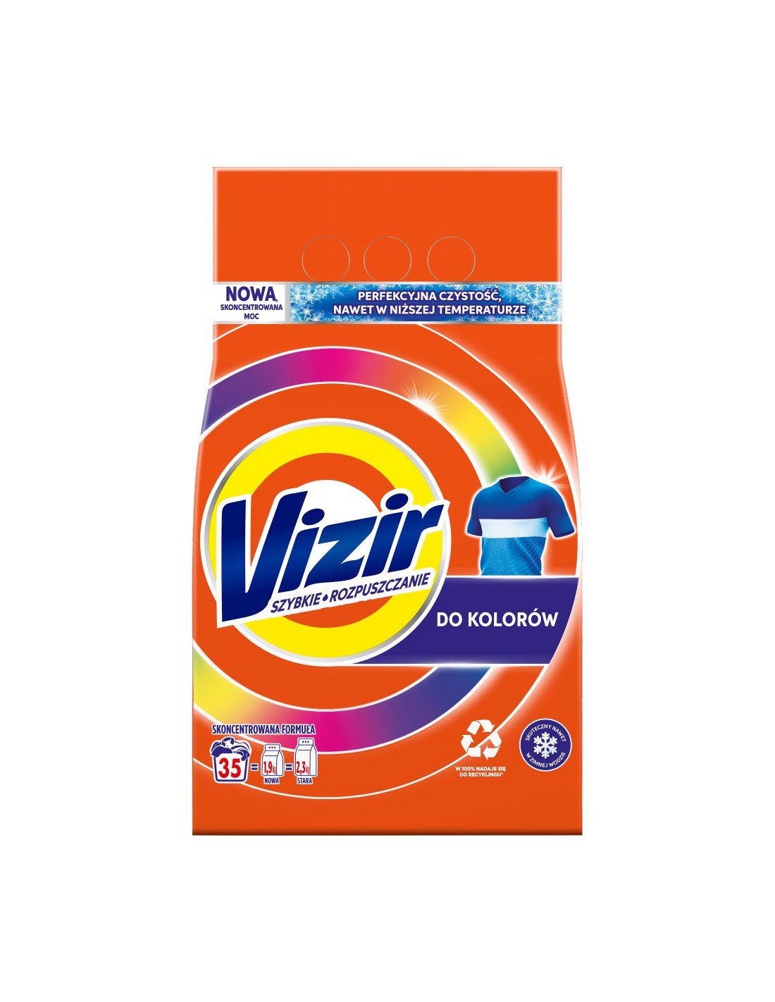 VIZIR Proszek do prania KOLOR 35 prań, 1,925 kg Proszek do prania kolorowych ubrań VIZIR zapewnia nieskazitelnie czyste pranie nawet uporczywych zabrudzeń. Koniec z dostrzegalnymi osadami – technologia Anti-Residue aktywuje się natychmiast i sprawia, że sprawi, że ubrania będą nieskazitelnie czyste.PROSZEK WIZIR DO KOLORU: