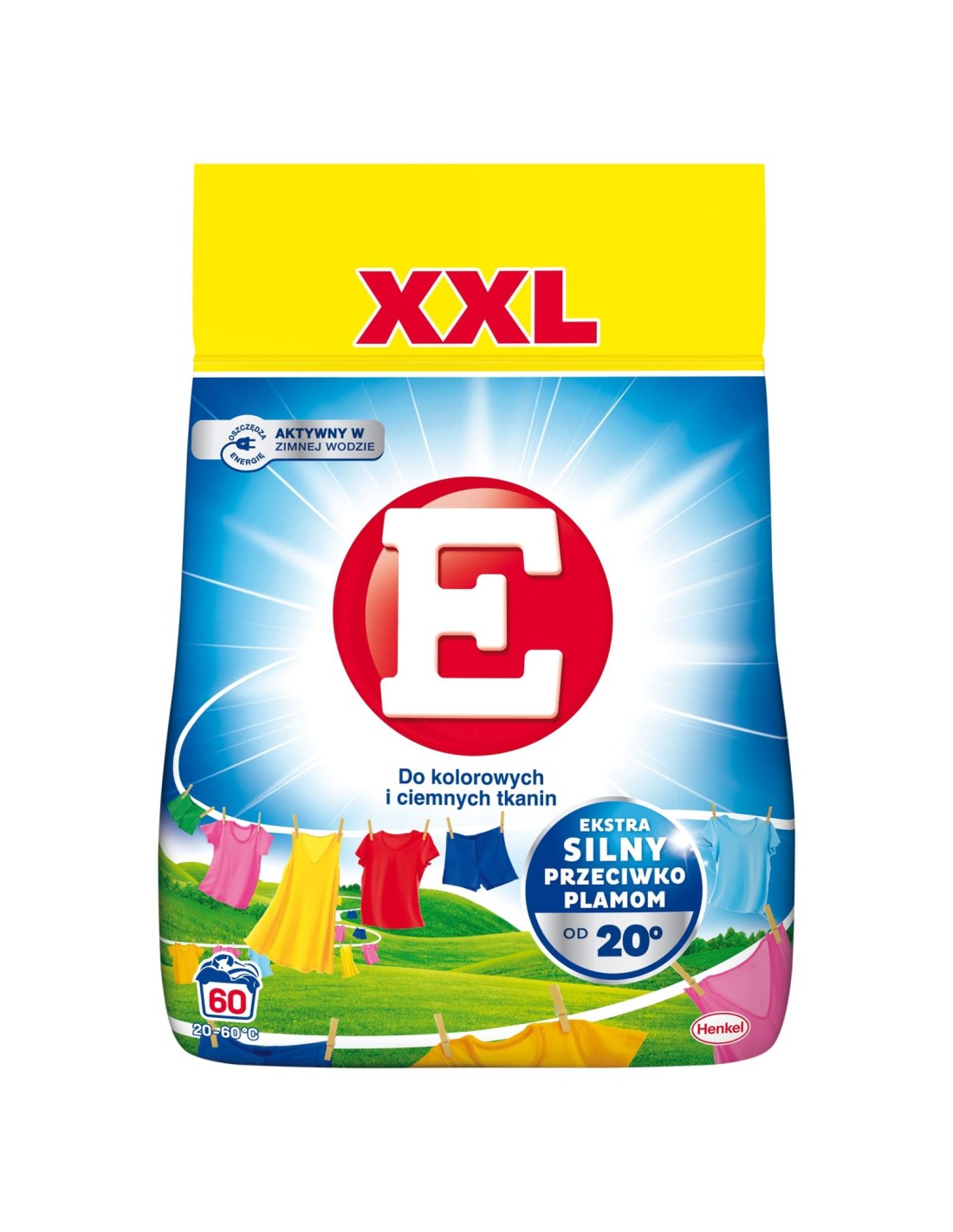 Dzięki swojej skutecznej formule E działa super silnie przeciwko plamom już od 20 °C. To pozwala na pranie dużej ilości brudnych ubrań perfekcyjnie czysto, świeżo oraz w niskich temperaturach, co pozytywnie wpływa na oszczędność energii.Proszek E do prania kolorowych tkanin, dzięki zawartości innowacyjnej formuły opartej na idealnie dobranych enzymach, zapewnia niezawodną ochronę tkanin, pozwalając na utrzymanie ich w doskonałej kondycji znacznie dłużej.E to dużo czystości i wydajności w dobrej cenie!