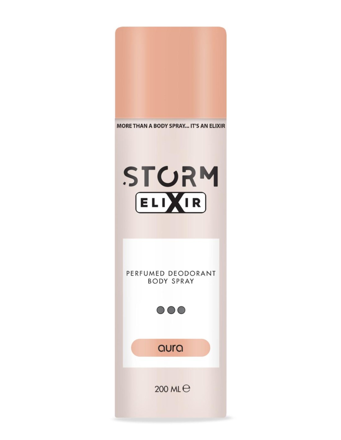 STORM ELIXIR Dezodorant damski 200ml AURAOtul się aurą świeżości. Zostań zapamiętana. STORM ELIXIR AURA to dezodorant stworzony dla osób, które przyciągają uwagę nie krzykiem, lecz energią. Inspirowany niewidzialną siłą, która nas otacza, AURA otula subtelnym, eleganckim zapachem, zostawiając za sobą ślad, którego nie sposób zapomnieć.Delikatna kompozycja zapachowa łączy kwiatowe nuty, białą herbatę i odrobinę ambry, tworząc wyrafinowaną mieszankę świeżości i zmysłowości. To dezodorant dla tych, którzy chcą być sobą – bez nadmiaru, bez przesady, z klasą.