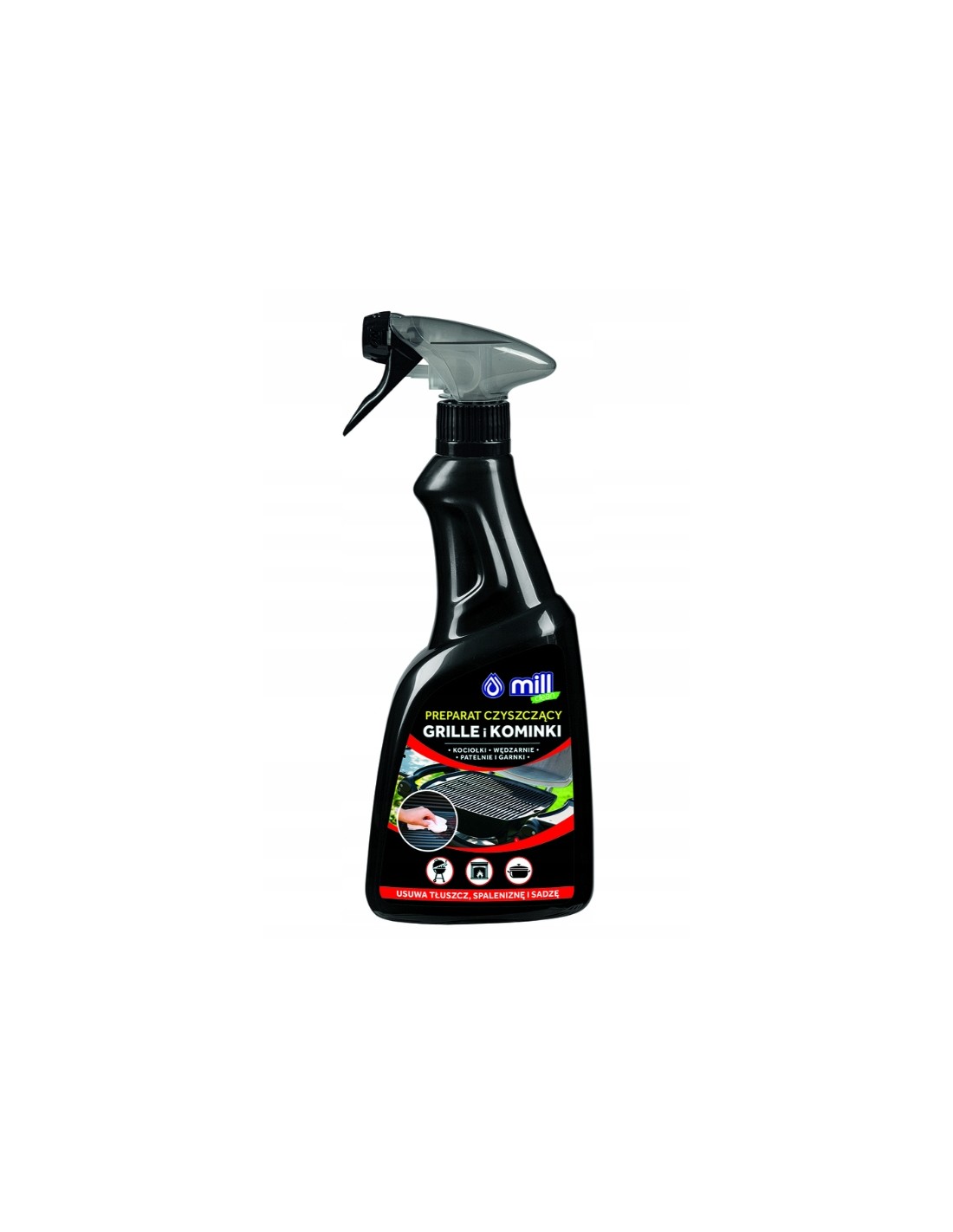 MILL Preparat do czyszczenia kominków, grilli i kociołków, 500 ml Oparty na zaawansowanej formule, ten koncentrat doskonale radzi sobie z najtrudniejszymi zabrudzeniami, usuwając sadzę, tłuszcz i inne nieczystości.Działanie preparatu sięga głęboko, odświeżając powierzchnie i przywracając im pierwotny blask. Bez trudu pozbywasz się nagromadzonego brudu, co sprawia, że Twoje miejsce relaksu staje się atrakcyjne i gotowe do użycia.Przywróć blask swojemu kominkowi, grillowi czy kociołkowi z pomocą MILL Preparatu do Czyszczenia. Odkryj, jak prosto możesz utrzymać swoje ulubione miejsce w doskonałej kondycji.To specjalistyczny płyn, skutecznie usuwający resztki jedzenia, przypalony tłuszcz oraz plamy z sadzy. Produkt skutecznie usuwa spaleniznę dzięki zawartym składnikom aktywnym. Preparat jest bezpieczny dla powierzchni z inoksu, żeliwa, a także obudów grilla z kamienia oraz cegieł.Przeznaczenie: