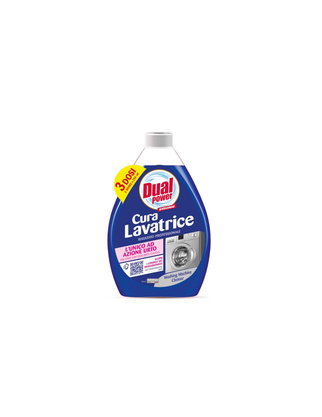 Płyn do czyszczenia pralki Dual Power przeznaczony jest do regularnego czyszczenia pralki. Produkt usuwa brud i kamień ze wszystkich części pralki i utrzymuje wydajność pralki. Pomaga pozbyć się nieprzyjemnych zapachów, zapewniając czystsze, świeżo pachnące pranie.