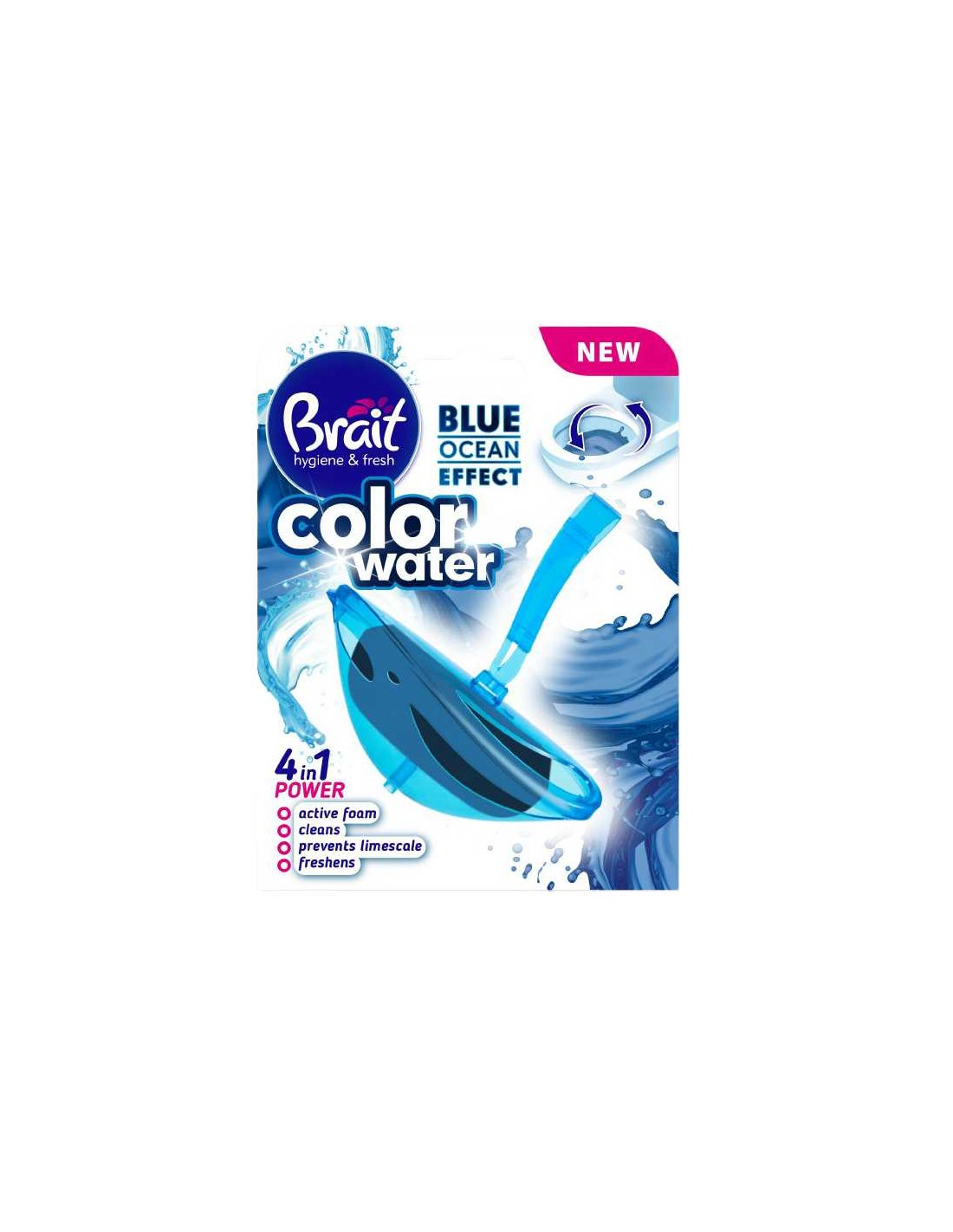 BRAIT HYGIENE & FRESH Zawieszka do toalety BLUE OCEAN EFFECT, 40 gBarwiąca wodę zawieszka BRAIT zapewnia czystość i świeżość toalety. Zawieszka usuwa brud w toalecie, odświeżając i eliminując brzydkie, niechciane zapachy. Zawieszka wytwarza aktywną pianę i zmienia kolor wody na niebieski, zostawiając świeży, intensywny zapach blue ocean.BRAIT ZAWIESZKA: