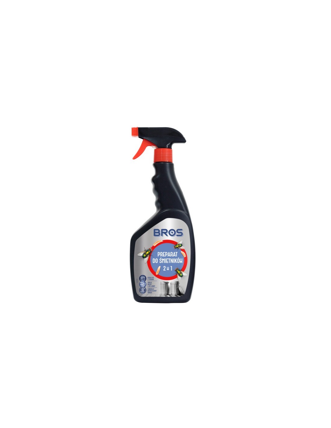 Płyn BROS to gotowy do użycia płyn do spryskiwania worków i pojemników na śmieci (w domu i na zewnątrz). Szerokie spektrum działania: zwalcza muchy oraz ich larwy, a także neutralizuje nieprzyjemne zapachy, pozostawiając w otoczeniu cytrynową świeżość.