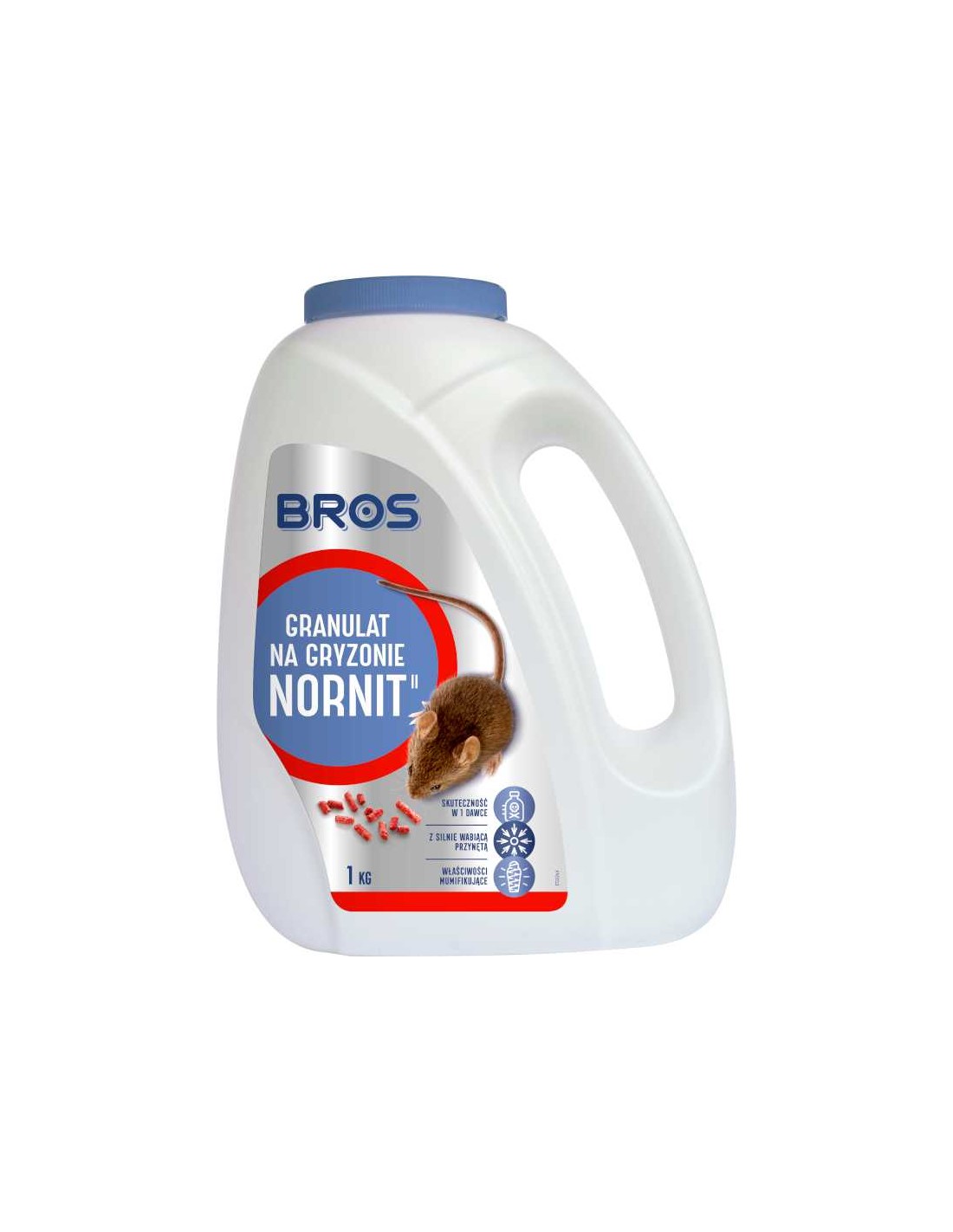 Nornit to granulat od Bros do zwalczania gryzoni wewnątrz i wokół budynków. To gotowa do użycia przynęta, która zawiera silnie wabiącą przynętę i wykazuje skuteczność już po jednokrotnym spożyciu. Działa z kilkudniowym opóźnieniem, dzięki czemu szkodniki nie kojarzą trutki ze śmiercią innych osobników. Posiada właściwości mumifikujące i zawiera gorzką substancję zniechęcającą ludzi i zwierzęta domowe do spożycia oraz barwnik. Wyjątkowo atrakcyjny dla gryzoni dzięki aromatowi zboża.