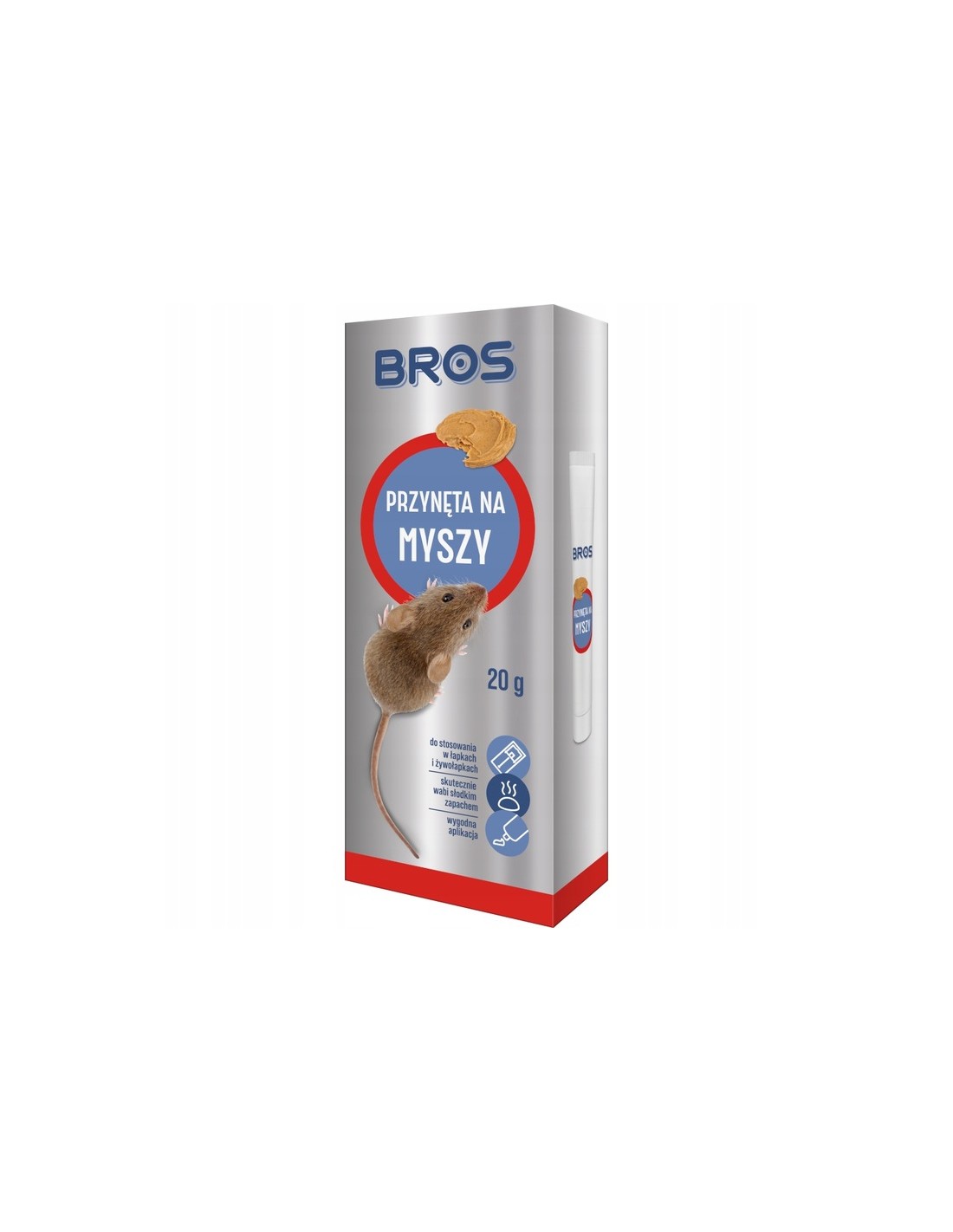 BROS Przynęta Wabik na Myszy 20 g – skuteczna i bezpieczna alternatywa dla chemicznych środków. Działa bez trucizny Jeśli szukasz prostego, ale sprawdzonego sposobu, by skutecznie zwabić myszy do pułapki, warto sięgnąć po BROS Przynętę Wabik na Myszy. To gotowy do użycia preparat w formie pasty, który skutecznie przyciąga gryzonie swoim intensywnym zapachem i atrakcyjną formułą. Produkt nie zawiera substancji trujących, dzięki czemu idealnie sprawdza się wszędzie tam, gdzie zależy Ci na bezpieczeństwie – także w pobliżu dzieci, zwierząt czy przechowywanej żywności.Dlaczego warto postawić na naturalne zwalczanie myszy bez trucizny? Myszy to problem, który pojawia się zarówno w domach, jak i garażach, piwnicach, altanach czy spiżarniach. Ich obecność wiąże się nie tylko z ryzykiem uszkodzenia wyposażenia, ale też z zagrożeniem higienicznym. Zamiast stosować środki biobójcze, które mogą być niebezpieczne, możesz skutecznie rozwiązać problem za pomocą bezpiecznej przynęty.BROS Przynęta Wabik na Myszy: