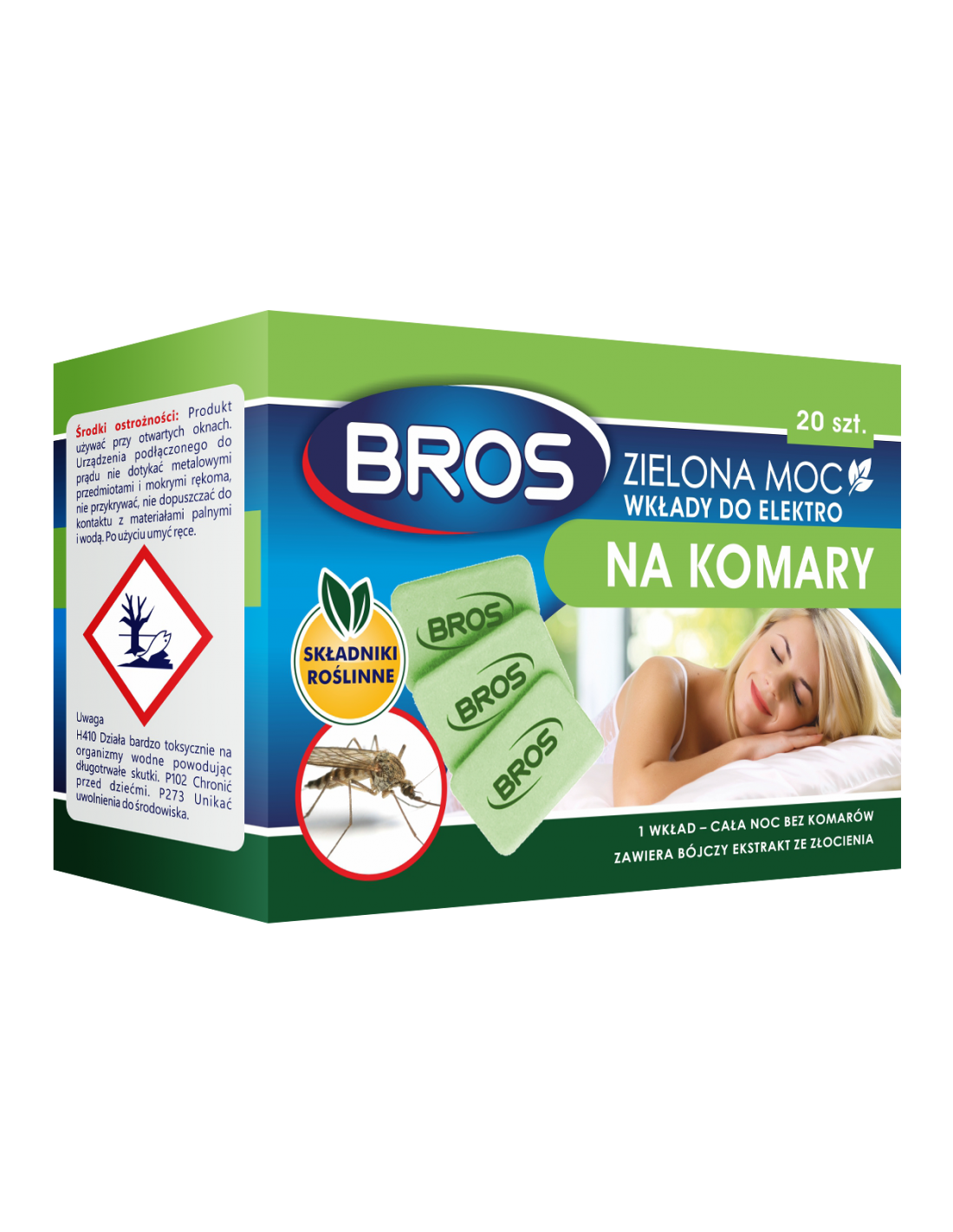 Wkłady do stosowania z elektrofumigatorem do zwalczania komarów znajdujących się wewnątrz pomieszczeń i zapobiega nadlatywaniu kolejnych z zewnątrz. Nasączone są ekstraktem pyretrum - naturalną substancją owadobójczą, otrzymywaną z kwiatów złocienia. Urządzenie działa nawet przy otwartych oknach i włączonym świetle, chroni pomieszczenie już po 30 minutach od włączenia. Jeden wkład zabezpiecza pomieszczenie do 12 m² (30 m³) przez ok. 8 h.Produktów biobójczych należy używać z zachowaniem środków ostrożności. Przed każdym użyciem należy przeczytać etykietę i informacje dotyczące produktu.