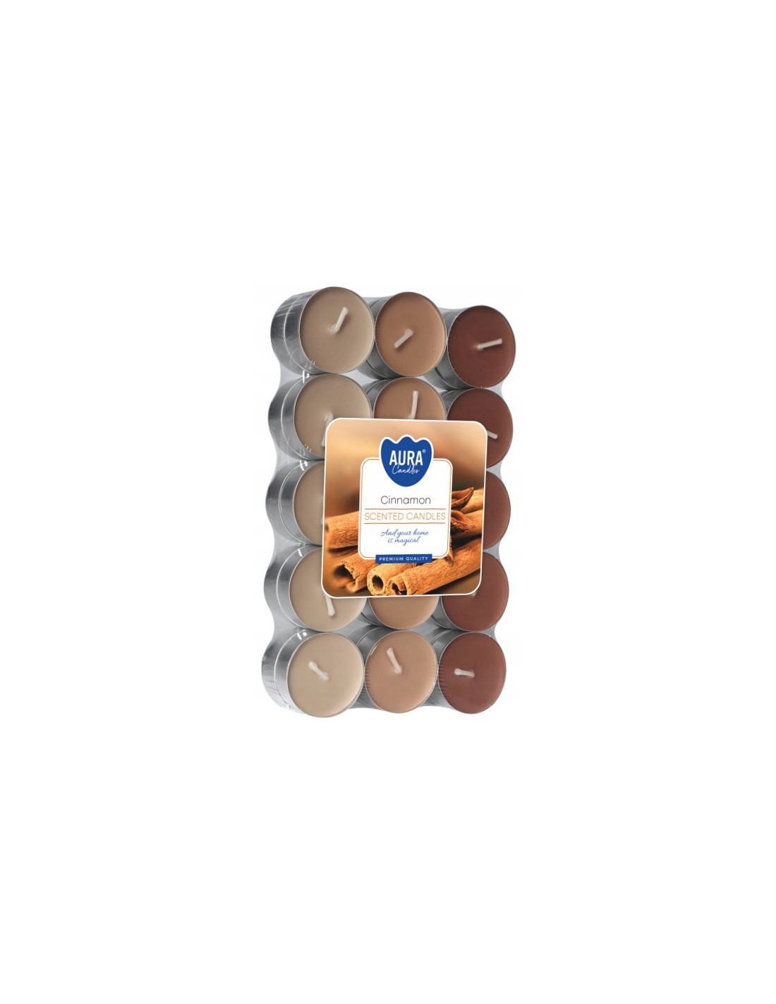 Tealighty Podgrzewacze o zapachu cynamonu, różnobarwnym wosku i czasie palenia do 4 godzin BISPOL. Pakowane po 30 szt jednostkowych w opakowaniu zbiorczym.