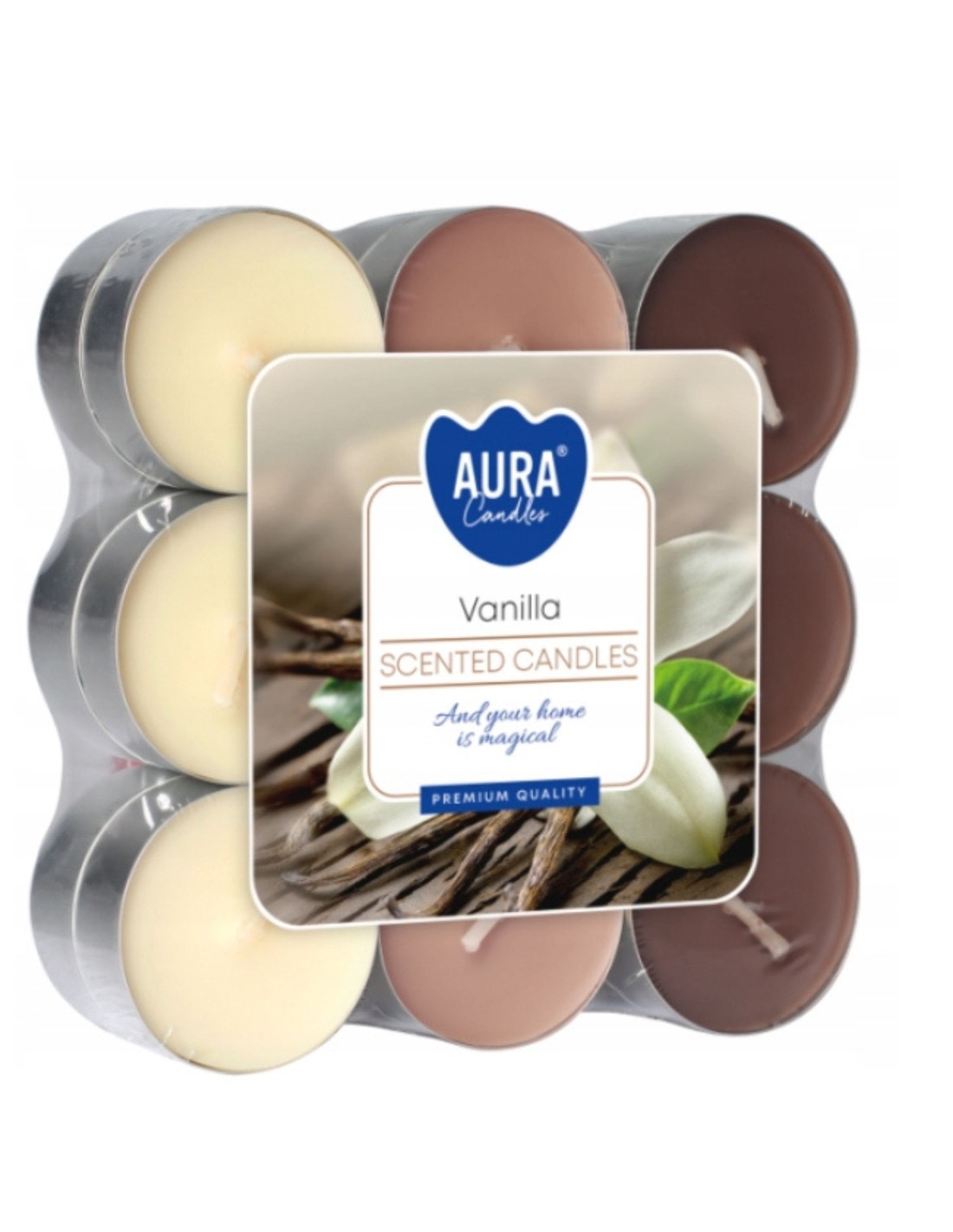 Małe świece wypełnione aromatycznym, różnobarwnym woskiem, pakowane po