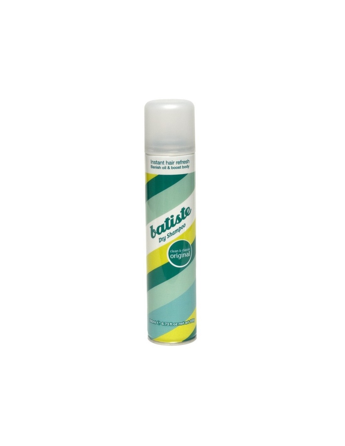 Batiste Original Classic Fresh suchy szampon, 200 mlBatiste Original to ponadczasowa formuła, która od lat cieszy się niezmienną popularnością wśród kobiet i mężczyzn. Jego świeży, cytrusowy zapach dodaje włosom energii i witalności, zapewniając uczucie czystości przez cały dzień.Brytyjska firma kosmetyczna Batiste opracowała jego formułę tak, aby proces czyszczenia włosów był jak najprostszy - nawet w najtrudniejszych czy nietypowych warunkach.Wystarczy nałożyć Batiste Original na twoją fryzurę, a produkt skutecznie adsorbuje wydzieliny gruczołów łojowych i zewnętrzne zanieczyszczenia. Dokładnie rozczesz włosy, usuwając proszek.Sposób użycia: Używać zgodnie z instrukcjami na opakowaniu. Przekroczenie zalecanej dawki może prowadzić do podrażnień skóry lub innych niepożądanych reakcji.Składniki:Ingredient, Butane, Isobutane, Propane, Oryza Sativa, (Rice) Starch, Alcohol Denat., Parfum (Fragrance), Limonene, Linalool, Geratinol, Benzyl Benzoate, Distearyldimonium Chloride, Cetrimonium Chloride.