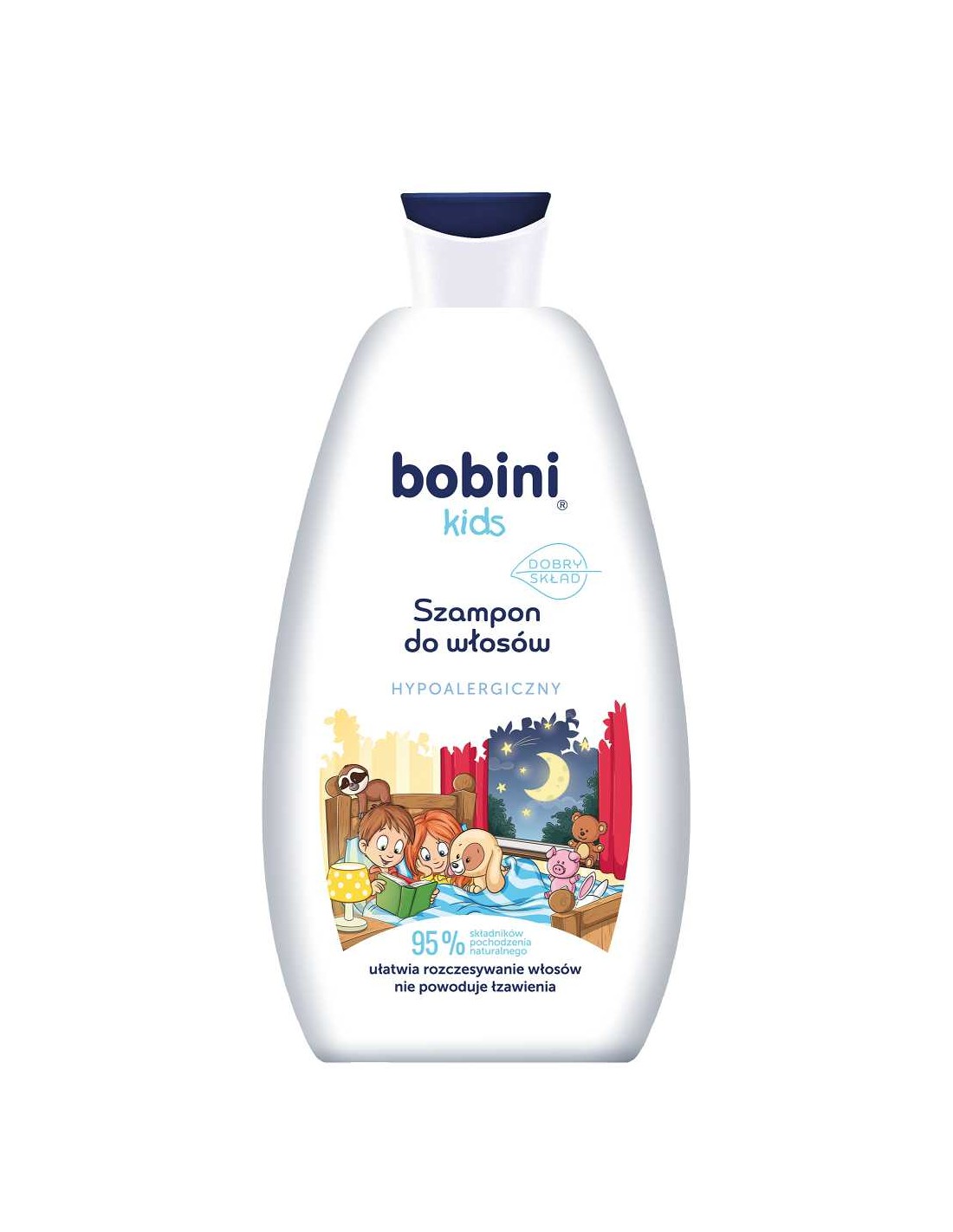 BOBINI KIDS Szampon do włosów HYPOALERGICZNY, 500 mlDla delikatnej codziennej pielęgnacji Twojego dziecka:– delikatnie myje i pielęgnuje– nawilża i odżywia włosy i skórę głowy– ułatwia rozczesywanie– pozostawia włosy miękkie i błyszczące– działa łagodząco na skórę głowy– nie powoduje łzawienia i nie podrażnia oczu– łagodny nawet przy częstym stosowaniu– dobrze się spłukuje– pH neutralne dla skóry– przebadany dermatologicznie– odpowiedni dla skóry wrażliwej i alergicznej