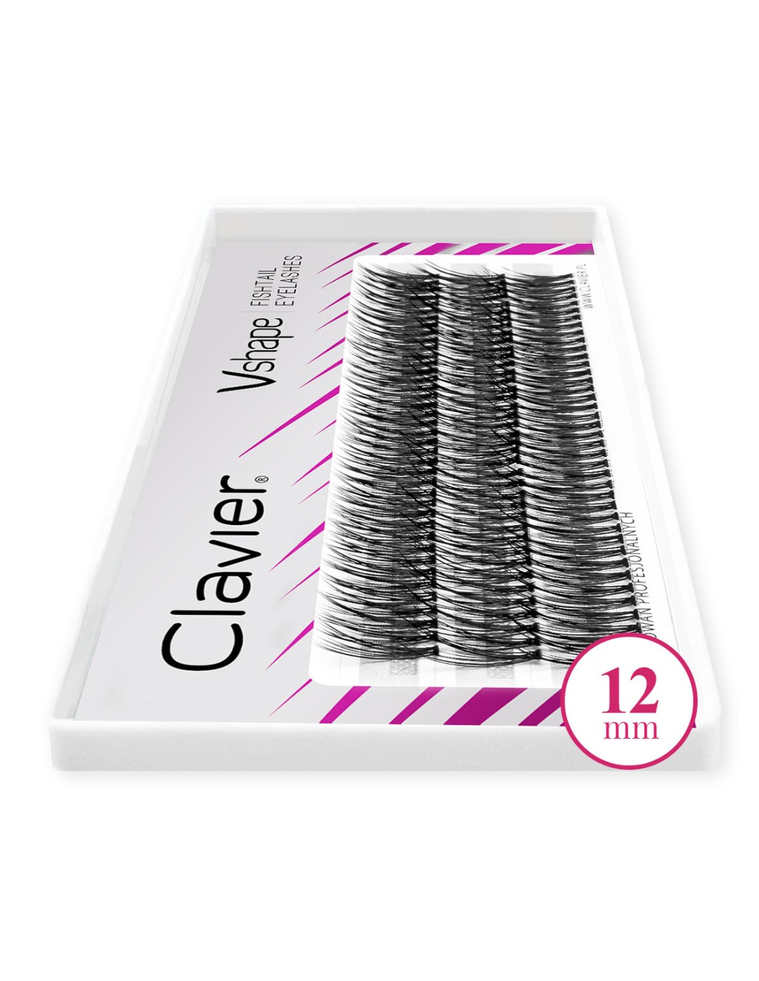 Przedstawiamy Wam długo wyczekiwane kępki Clavier “V shape Fishtail Eyelashes”!Kępki o charakterystycznym kształcie litery “V” swoją ogromną popularność zawdzięczają celebrytce Kim Kardashian, która słynie z niesamowitego wachlarza rzęs. Tajemnica tych kępek tkwi w ich nietypowym kształcie określanym w Polsce i na świecie jako jaskółki, V-ki, kardashianki czy też fishtail (z ang. rybi ogon). Każda kępka jest najdłuższa w swoich zewnętrznych kącikach, a długość jej rzęsek zmniejsza się stopniowo do środka kępki. Taka właśnie budowa nadaje kępce ten charakterystyczny wygląd litery “V”. Dzięki temu możemy zbudować wachlarz o nietuzinkowym wyglądzie nadającym każdej stylizacji charakteru i delikatnego “pazurka”. Kępki świetnie sprawdzą się użyte samodzielnie oraz jako uzupełnienie wachlarza zbudowanego z kępek Classic lub Du2o. Występują w długościach 8, 10, 12 oraz 14mm.Poczuj się jak gwiazda z “V shape Fishtail Eyelashes”!Sekret rzęs typu CPo drugie, specjalnie dobrany rodzaj skrętu rzęs typu C daje efekt zjawiskowych, podkręconych rzęs bez efektu sztuczności. Według niezależnych badań efekt jaki otrzymujemy przy użyciu kępek o skręcie typu C jest najbardziej pożądanym przez większość klientek, ponadto pasuje do większości typów urody i budowy oka.Naturalny wyglądPo trzecie. Jedwabiste kępki Clavier są bardzo przyjemne w noszeniu ze względu na swoją lekkość i delikatność. Kępki zostały stworzone z dbałością o najmniejszy szczegół na każdym etapie produkcji, tak żeby spełniać oczekiwania nawet najbardziej wymagających klientek.