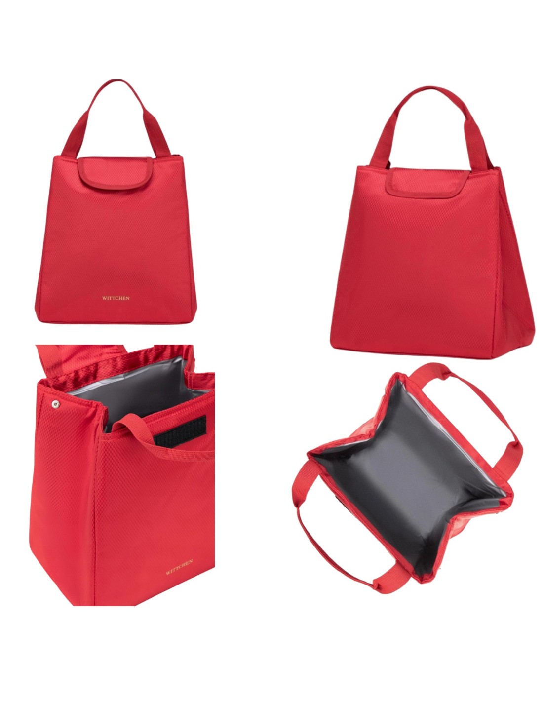 Torba termoizolacyjna na lunch WITTCHEN – elegancja, funkcjonalność i wyjątkowy prezent w jednym!Poznaj torbę na lunch termoizolacyjną WITTCHEN, która łączy w sobie elegancję, funkcjonalność i najwyższą jakość wykonania. Stworzona z myślą o osobach ceniących komfort i zdrowy styl życia, doskonale sprawdzi się w pracy, w podróży czy na pikniku.Praktyczny i wygodny designDzięki izolowanej termicznie komorze Twoje posiłki zachowują odpowiednią temperaturę – zarówno ciepłe, jak i zimne. To idealne rozwiązanie dla tych, którzy lubią mieć zawsze przy sobie domowy, świeży obiad.Lekka, poręczna forma oraz wygodny uchwyt ułatwiają przenoszenie, a przemyślany kształt pozwala zmieścić lunchbox, napój i przekąski. Torba jest łatwa w czyszczeniu i odporna na codzienne użytkowanie.Styl, który wyróżniaIntensywny czerwony kolor dodaje energii i nowoczesnego charakteru, a subtelne logo WITTCHEN podkreśla prestiż i elegancję marki znanej z najwyższej jakości akcesoriów.Torba na lunch WITTCHEN – połączenie funkcjonalności, stylu i niezawodności, które sprawi, że każdy posiłek będzie przyjemnością.Parametry produktu:Materiał: poliesterWysokość: 26,5 cmSzerokość: 21 - 25,5 cmGłębokość: 3 - 17 cmDługość rączek: 33 cmPodszewka: termoizolacyjna PEVAWaga: 0,23 kgSposób noszenia: do ręki
