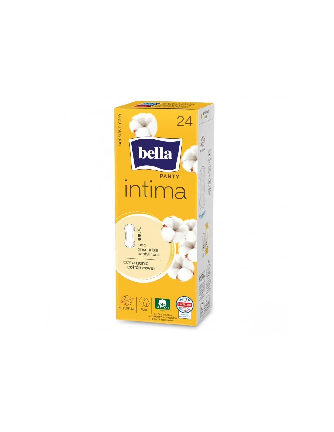 Wkładki higieniczne Bella Panty Intima LARGE, 24 sztWkładki higieniczne Bella Panty Intima to idealny wybór dla kobiet ceniących naturalność i delikatność. Pokochasz je za niezwykle delikatne pokrycie wykonane w 100% z organicznej bawełny pochodzącej z upraw ekologicznych. Taka bawełna jest bezpieczna dla alergików i osób ze skórą wrażliwą. Proces jej pozyskiwania jest w pełni kontrolowany i spełnia rygorystyczne standardy środowiskowe.Cechy produktu:-pokryte bawełną organiczną-oddychające-bezzapachowe-grubość: ultracienkie-kształt: regularny-długość: wydłużone-chłonność: 2/4-Miękkie i delikatneZwiększona powierzchnia - Wkładki Bella Panty Intima Long cechują się wydłużonym kształtem, który doskonale sprawdzi się przy bardziej obfitych upławach.Bezzapachowe - Wkładki Bella Panty Intima nie posiadają dodatku zapachowego, który mógłby powodować podrażnienia wrażliwych okolic intymnych. Mimo to wkładki pozwalają na zachowanie maksimum higieny.Oddychające - Wkładki Bella Panty Intima pozwalają skórze oddychać, co jest szczególnie ważne w przypadku stref intymnych. Oddychające materiały umożliwiają cyrkulację powietrza, a tym samym zmniejszają ryzyko namnażania się bakterii w wilgotnym środowisku.Bez chloru elementarnego - Wkładki Bella Panty Intima nie są bielone za pomocą szkodliwego chloru elementarnego.
