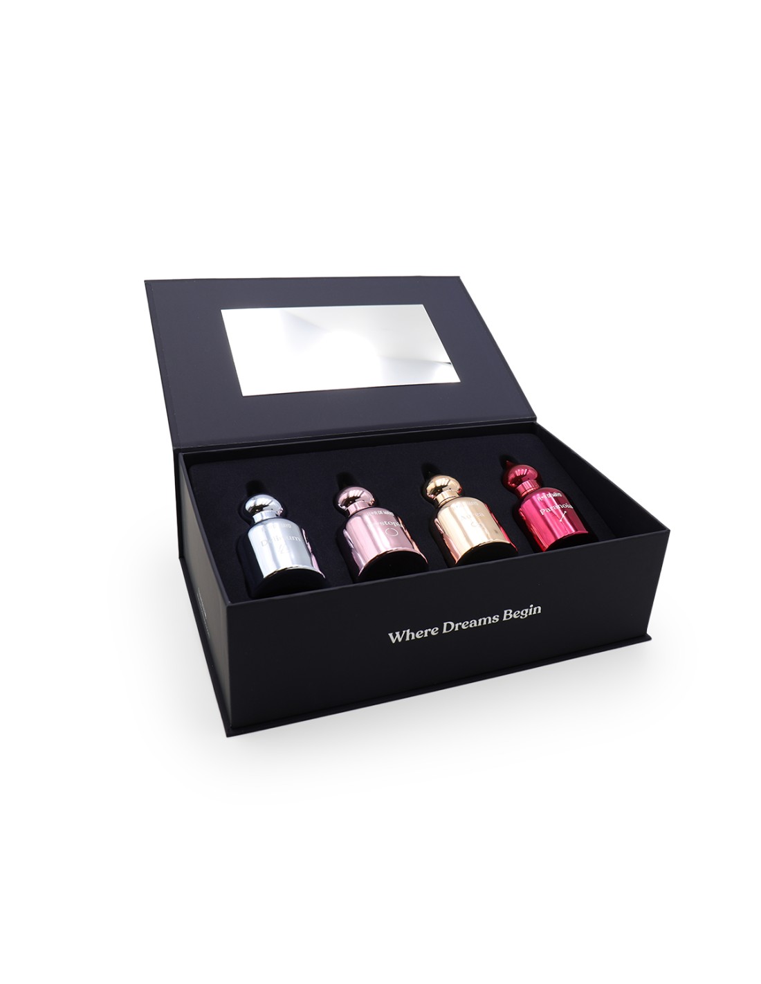 Zestaw Flor de Mayo to propozycja, która pozwala stworzyć własną garderobę zapachową. Cztery różne arabskie wody perfumowane dają ci możliwość dopasowania aromatu do pory dnia, nastroju i okazji. Dzięki temu możesz cieszyć się zapachem, który pracuje razem z tobą, zamiast przytłaczać lub szybko znikać.