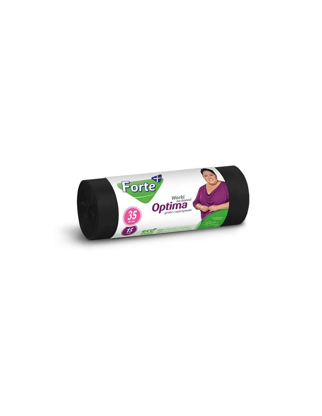 FORTE+ Worki na śmieci proste czarne OPTIMA 35 L, 15 sztWorki na śmieci Optima marki Forte+ są wykonane w 100% z surowców pochodzących z recyklingu odpadów foliowych z wysypisk śmieci, odpadów poprzemysłowych oraz resztek poprodukcyjnych. Dzięki temu, iż są wykonane z grubej i odpornej na rozerwania folii LDPE nie przeciekają i gwarantują, że Twoje śmieci pozostaną zawsze w worku, aż do momentu, kiedy znajdą się w kontenerze. Zgrzew typu gwiazda sprawia, iż idealnie dopasowują się do różnych typów i kształtów pojemników na śmieci.