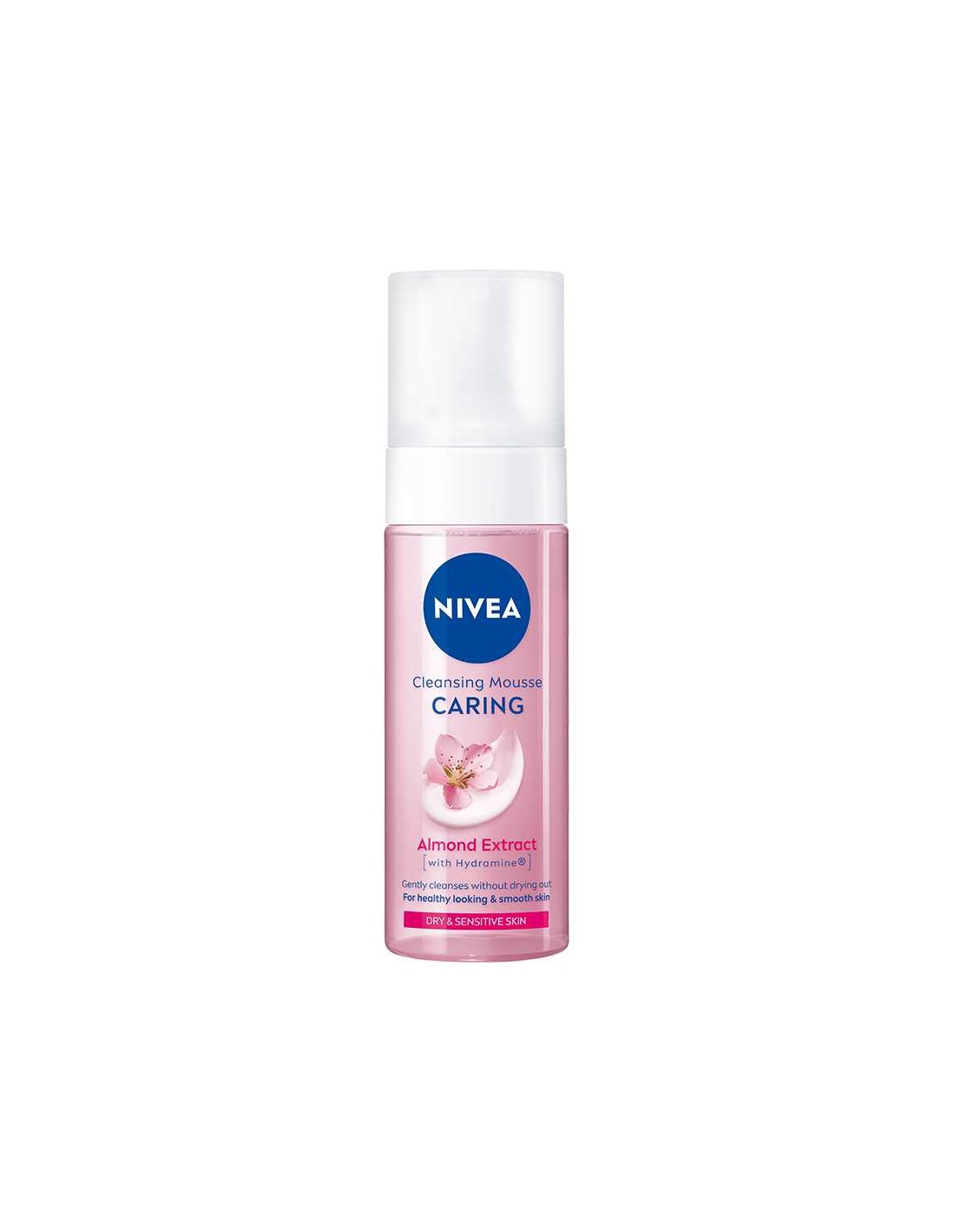 NIVEA CARING Pianka do mycia twarzy do suchej i wrażliwej cery PIELĘGNUJĄCA, 150 ml Pielęgnująca pianka do oczyszczania twarzy NIVEA została wzbogacona ekstraktem z migdałów i hydraminą, które skutecznie zatrzymują wilgoć w skórze, zapewniając tym samym odpowiedni poziom nawilżenia.Pianka została stworzona z myślą o potrzebach skóry suchej i wrażliwej. Nie tylko delikatnie oczyszcza bez wysuszania, ale także łagodnie pielęgnuje skórę. Zapewnia wyjątkowe i przyjemne oczyszczanie dzięki formule miękkiej pianki.W efekcie skóra jest delikatnie oczyszczona, gładka i wyglądająca zdrowo. Tolerancja dla skóry potwierdzona dermatologicznie.PIELĘGNUJĄCA PIANKA NIVEA: