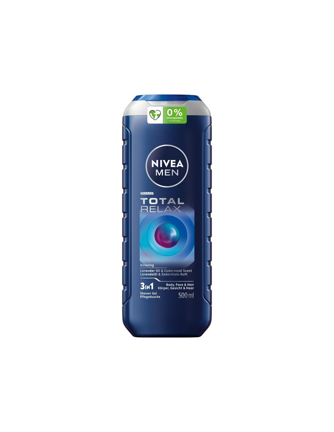 NIVEA Men Total Relax Żel pod prysznic dla mężczyzn, 500mlTen odświeżający żel pod prysznic ma innowacyjną formułę z jonami srebra, która jak naukowo udowodniono, powstrzymuje rozwój bakterii i dzięki temu pozwala Ci zatrzymać uczucie świeżości po prysznicu na dłużej. Lekka konsystencja żelu zamienia się w delikatnie pielęgnującą pianę, która myje, orzeźwia Twoją skórę i pobudza do działania. To kosmetyk przygotowany specjalnie z myślą o mężczyznach - zapewnia kompleksową pielęgnację pod prysznicem i działa na jak prawdziwy zastrzyk energii.